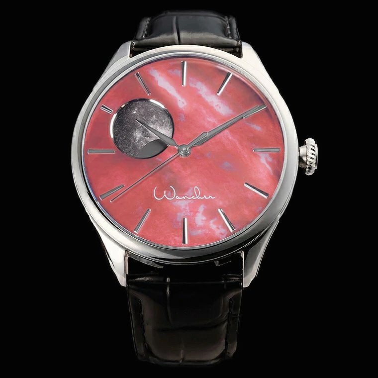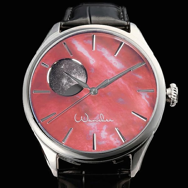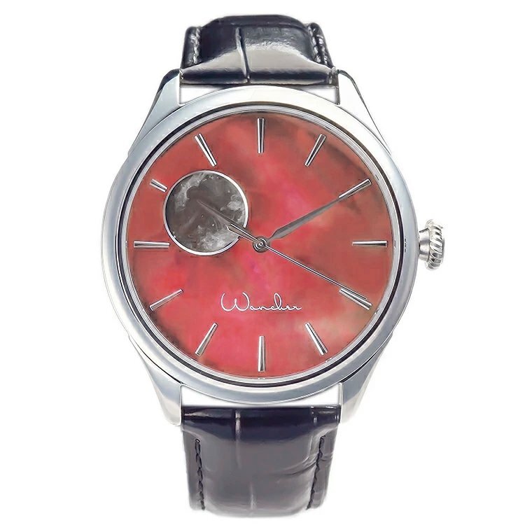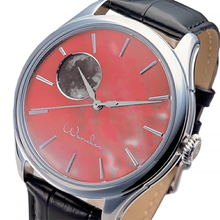 | 【WANCHER/ワンチャー】 「ドリームウォッチ KAGUYA」 リミテッドカラー ピンク WANCHER ロゴVer. Kickstarterで話題になった腕時計 月の満ち欠け【月相】を表示するムーンフェイズ 大変お買い得な1円~スタート! ![]() s://shopping.c.yimg.jp/lib/wancher/kag-pk-1.jpg 日本の古典文学をモチーフに生まれた 機械式自動巻き時計 Dream Watch KAGUYA Moon Phase 魅惑のミッドナイトパール文字盤と3Dムーンの月齢表示 28,800振動 ![]() 文字盤を日本の伝統色の朱鷺色で染め上げ、 10時の位置には月の満ち欠けが楽しめる月齢表示を配置し、 神秘的な夜空を表現しました。1本1本が手作りの美しい時計に28800振動 のハイビートムーブメントを採用したDream Watch KAGUYAは、 月にまつわる日本の古物語をモチーフにしたWANCHER監修の新製品です。 ![]() *こちらはイメージ画像です(今回の出品は文字盤が朱雀色/ロゴがWancher)* 遥かなる宇宙への憧憬―KAGUYAというネーミングの由来 新発売の「Dream Watch KAGUYA」は、作者、成立年代とも不明と言われる、 日本最古の物語『竹取物語』の主人公・かぐや姫にちなんで名づけられました。 竹から生まれた世にも不思議な女の子が輝く美しい女性に成長し、 帝や貴公子たちからの求婚を退け、生まれ故郷の月に帰る物語は、 私たちに出会いと時の流れ、そして遥かな宇宙を連想させてくれます。 この神秘的なかぐや姫の物語は、11世紀初めに成立した 「世界最古の長編小説」と呼ばれる紫式部の『源氏物語』のなかにも登場します。 WANCHERとは 2011年に万年筆の会社としてスタートした(株)WANCHERは、 実用性と伝統工芸が融合した製品を作り、販売している会社です。 主な製品は万年筆と時計です。なかでも弊社を代表するDream Penは、 2020年のKickstarterにて大きな成功を収めました。 また同じように日本伝統の漆を施したDream Watch漆は 日本国内のクラウドファンディングにおいても、目標額達成という成功を収めたのです。 ![]() KAGUYAは「宇宙と時間の流れ」を表現 WANCHERが作る製品には「実用品にアートを融合させることで、 たくさんの方にアートを楽しんでいただきたい」という願いが込められています。 新発売のKAGUYAのテーマは「宇宙と時間の流れ」です。 どんなに文明が進歩しても、人の生活に深い影響を与えている 月の満ち欠けは人間の力が及ばない宇宙と自然の営みの中にあります。 その遥かなる宇宙と雄大な自然をイメージした腕時計を作るために、 私たちはバッテリーを使用することなく、重力と人間の運動エネルギーだけで 止まることなく時刻を示し続ける腕時計を作ることにしました。 その時計には「限られた時と命のたいせつさ」を感じていただきたいという、 私たちの思いを込めています。 KAGUYAの構想は1990年代に始まった 手の上に宇宙を閉じ込めたような腕時計を作り、多くの人々にお届けしたい。 そう考えたきっかけは、湾岸戦争時の体験にあります。 戒厳令で道路が閉鎖され、日が沈んだ砂漠のなかに たったひとり取り残されて見た360度の地平線と球形に広がる 満天の星空を数十年経った今でも思い出します。 その夜は、とても静かでした。私がいる砂漠のすぐそばで戦争が起きているのに、 争いの音はなく、月と星―つまり宇宙が自分を中心に回っているかのように感じました。 人の営みに何が起きても、宇宙と時間の流れはそれぞれの人を中心に 回り続けているのだと気がつき、落ち着いた気分になれたのです。 そのときです。優しく流れる砂漠の風のなかに、腕時計のテンプ音が聞こえてきました。 音にうながされて自分の腕時計を見ると、 たった今感じた「自分を取り巻くように回っている宇宙」が、 文字盤上に凝縮しているように思ったのです。 砂漠での体験から、誰もが平和な気持ちになれる宇宙と時の流れを 感じられる時計を作りたいという気持ちを温め続けてきました。 加えて、永く使い続けられるムーブメントを搭載した 愛着の持てる時計を作りたいと決意したのです。 ![]() Dream Watch KAGUYA 詳細 ■自動巻き 腕時計を動かす駆動部をムーブメントと呼びます。 このムーブメントには大きく分けて「クォーツ式」と「機械式」があります。 さらに「機械式」には「手巻き」と「自動巻き」があり、 新発売のKAGUYAは「自動巻き」を採用しています。 「自動巻き」は手の動きと重力により時計内部のローターが 回転してゼンマイを巻き上げます。そのゼンマイに 蓄積されたエネルギーを動力として、時計が動くのです。 ■テンプ ゼンマイに蓄積されたエネルギーは時刻を示す時計の針を動かす ムーブメントと文字盤上の10時に位置する窓のなかで変化する 月の満ち欠けを作動させ表示するために使われます。 心臓部のテンプは、1時間当たりの振動数でいえば28,800振動の高性能です。 つまり精密な8ビートを刻む「8ビート時計」なのです。 ■ダイヤル 漆黒の闇夜を思わせる深い藍色と10時の位置で月の満ち欠け が楽しめる文字盤には、『竹取物語』に由来する哲学が込められています。 昔