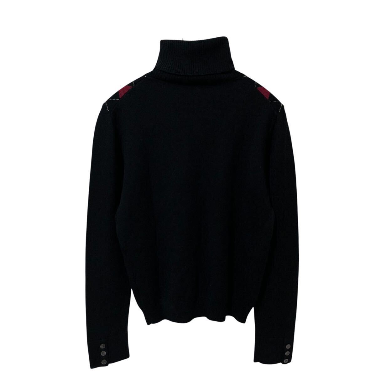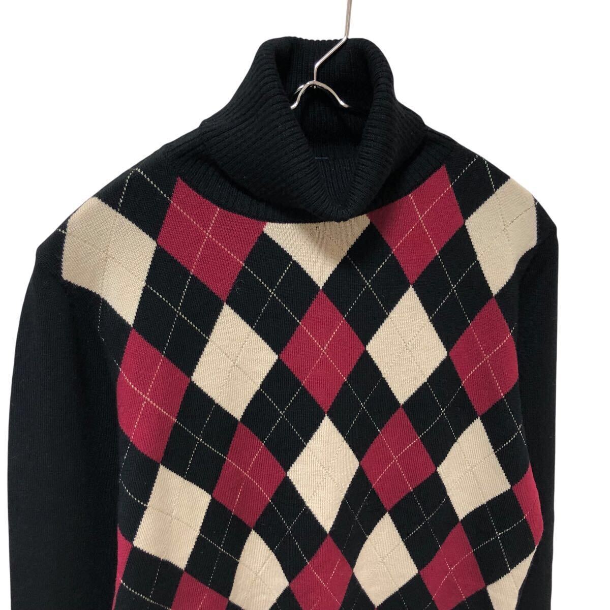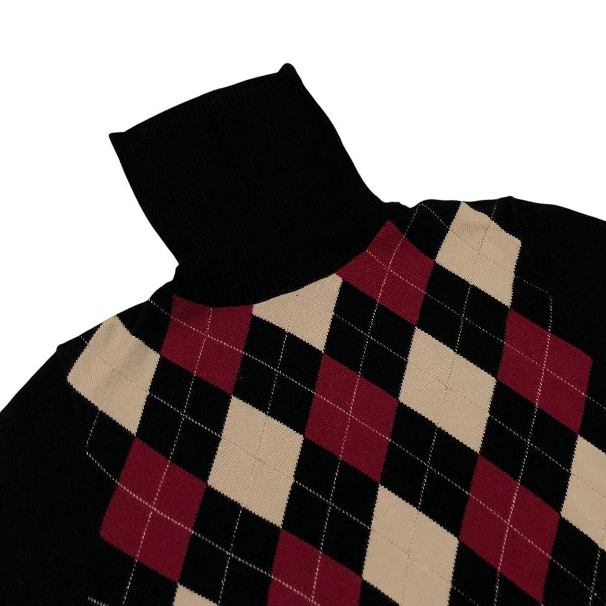 9NG003-60 BURBERRY LONDON バーバリー ロンドン ハイネック ニット 長袖 トップス アーガイル柄 ロゴ レディース 1 S相当 黒 赤 ベージュ