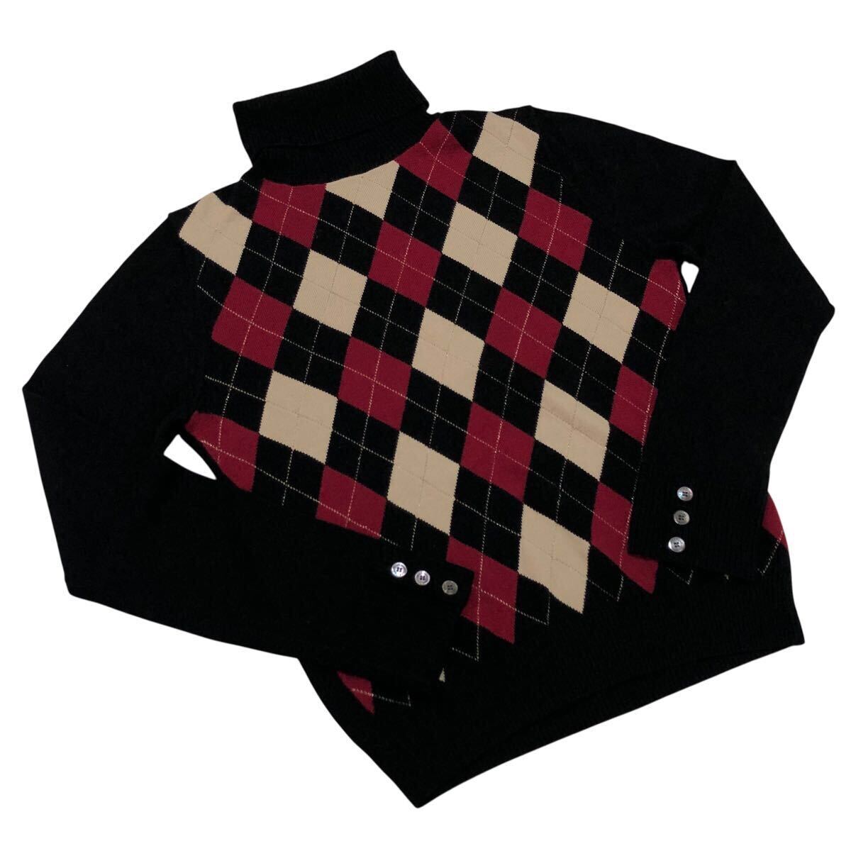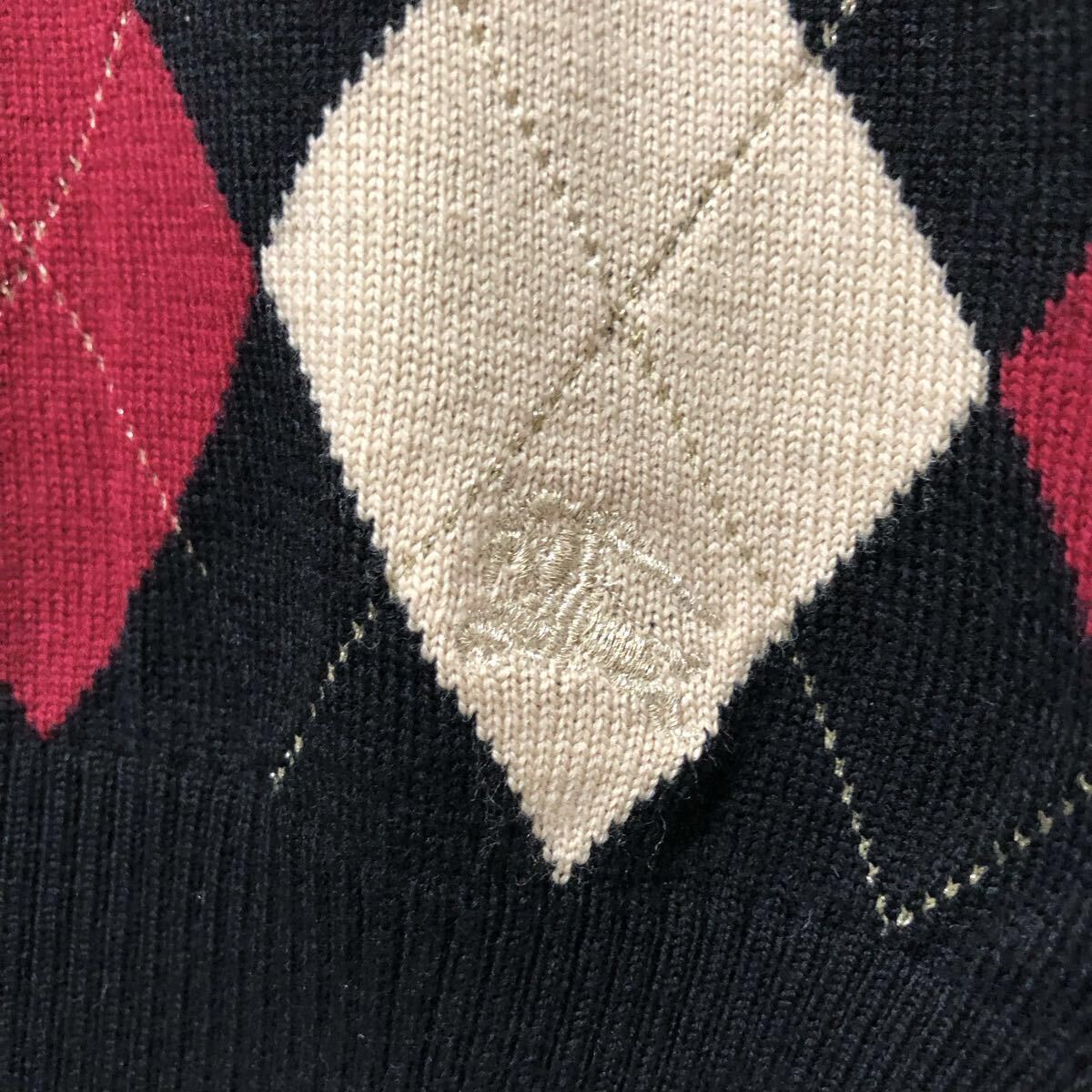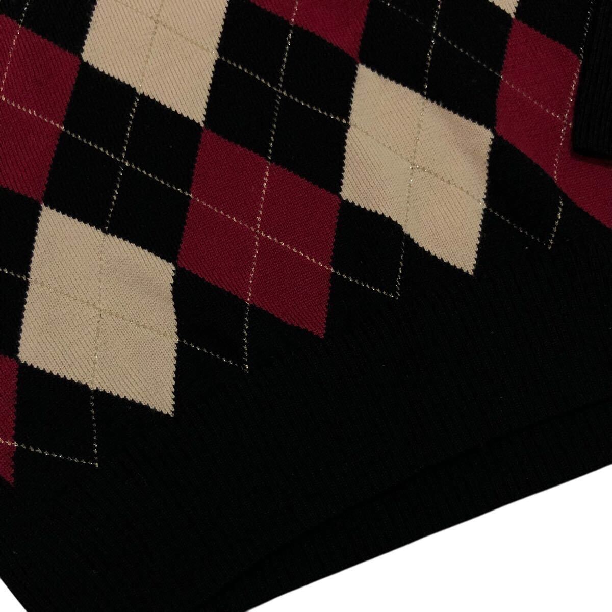 9NG003-60 BURBERRY LONDON バーバリー ロンドン ハイネック ニット 長袖 トップス アーガイル柄 ロゴ レディース 1 S相当 黒 赤 ベージュ