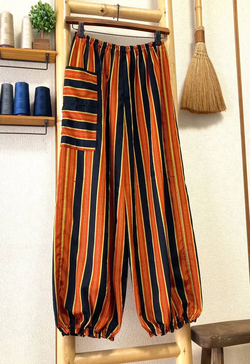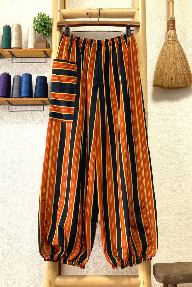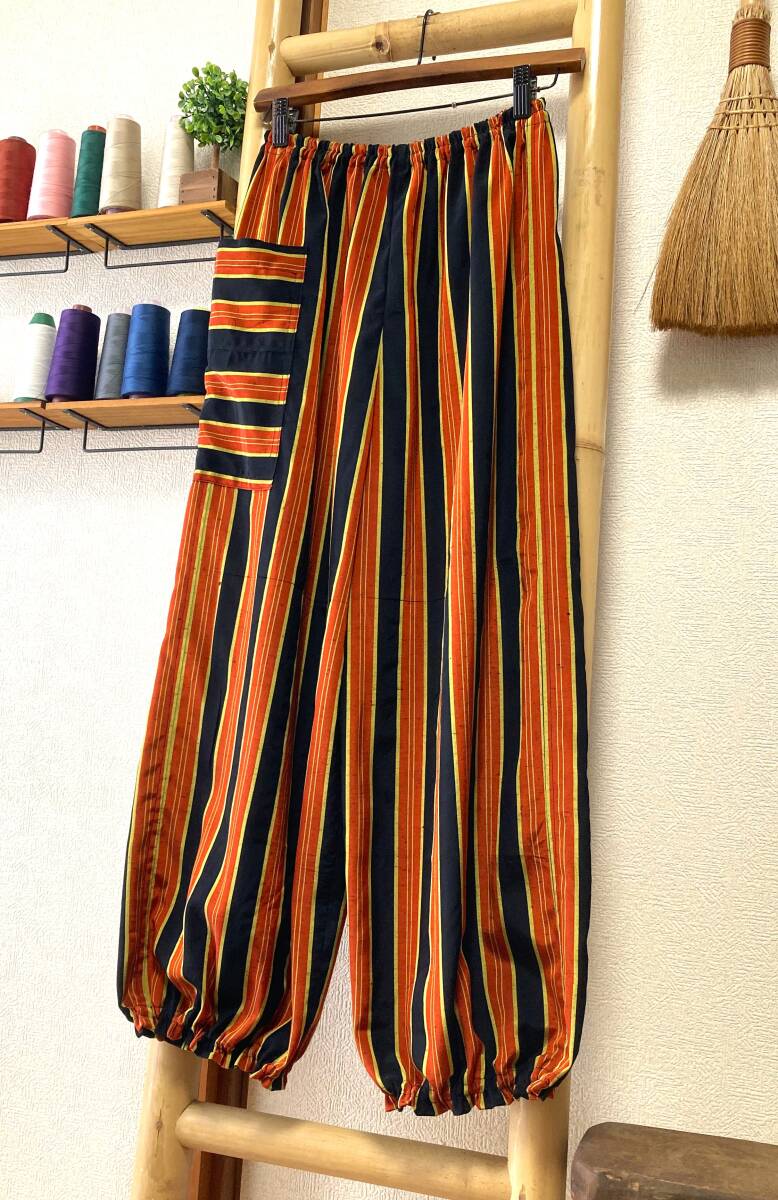 ![]() | 商品説明 ✽鎌倉まるか堂✽ ~もんぺ風~ ゆったりらくちんパンツ ~作品詳細など~ ✽総丈90cm 股下60cm 渡り幅35㎝ 裾幅16cm ✽ウエストサイズ 55㎝~110㎝ ・目安として、50㎝~100㎝=S~M 55㎝~110㎝=M~L 60㎝~120㎝=L~LL以上 ✽生地…絹混(化繊)。普通厚、光沢あり、程良いシャリ感と少しのハリ感、つるりさらり&とても柔らかく手馴染み良いとてもしっかりした上紬生地。 ・(波打つようなドレープ感ある生地も特徴) ✽色柄…黒、緋、黄の三色を基調にした縞柄のシンプルなデザイン。ちらちら入る黒の節糸が織りの風合いを引き出してます! ・() ✽美点…ド派手に見えて黒味帯びた色調でしっかり格好イイ。「どうだ!」と言わんばかりの存在感で穿き愉しんで欲しい作品!気軽に洗濯出来て扱い易いのも魅力です! ・(しっかり水通しをした生地。裾はきゅっと絞った足捌き良いゆったりまるっこいシルエット&裾のひらひらが大きめです♪) ✽特に浅くも深くもない一般的な深さの股上です。 ・裏地はついてませんので必要に応じてぺチやタイツなどのアンダーを併用して下さいませ。 ・アウトポケットが一つ付いてます。 ・ウエストはゴム2本、裾はゴム1本、ともに調節穴有り。 ・お直しは無料(裾上げなど簡易なお直し)ご連絡時にお願いします。 支払方法 ✽ヤフー簡単決済 発送方法 ✽ゆうパケット:追跡アリ(場合により定形外郵便) ✽発送は神奈川県からです。 注意事項 ・解き生地の場合は染み、焼け、解痕、折皺等ある場合がございますのでご理解をお願い致します。 ・商品はノークレーム・ノーリターンでお願い致します。 ・評価内容に問題のある方のご入札は取り消す事もございます。 ・質問はお気軽にお尋ねくださいませ、出来るだけ詳しくお答え出来るよう努めます。 ✽☆☆☆✽☆☆☆✽☆☆☆✽☆☆☆✽☆☆☆✽☆☆☆✽☆☆☆✽☆☆☆✽☆☆☆✽☆☆☆✽☆☆☆✽☆☆☆✽☆☆☆✽☆☆☆✽☆☆☆✽☆☆☆✽☆☆☆ ✽繊細で優美にあやなす柄や簡素単純でありながらも完成された柄など古から大事に受け継がれてきた和柄のもつ潜在能力は無限の可能性があります、 そんな和柄を活かした着物リメイクを気軽に纏い普段生活に自然と取り入れて頂けたらこの上なく嬉しく思います。和柄万々歳(*'▽') |