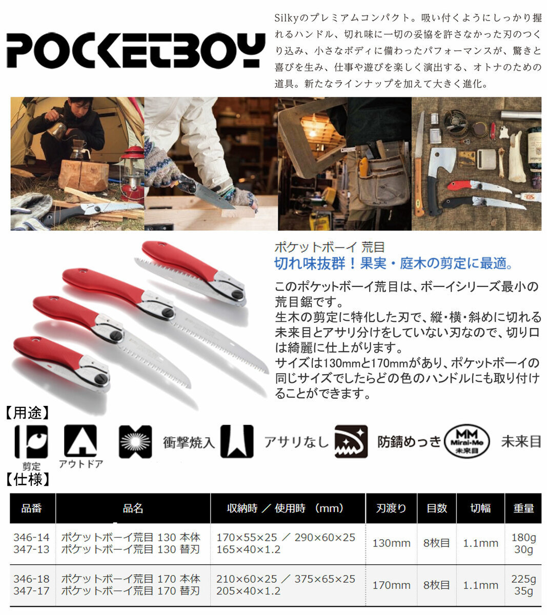 【オススメ】 〈シルキー〉 ポケットボーイ(荒目)本体 170 のこぎり 折りたたみ 346-18