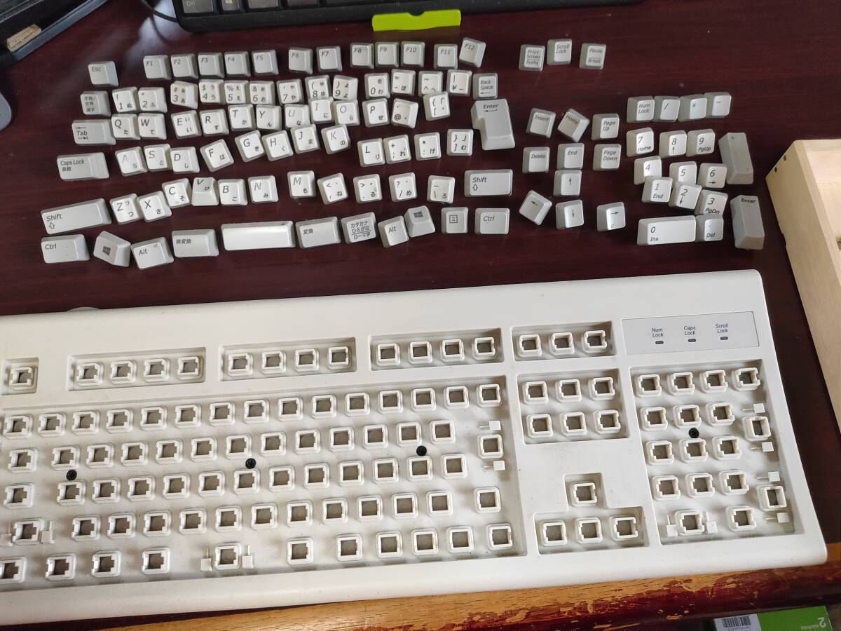 キートップをすべて外して、キーと本体の埃をエアガンで飛ばし、中性洗剤液でふき取りしてあります。