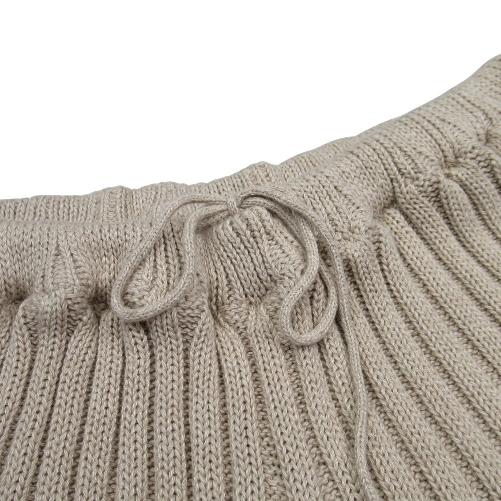仕様:ざっくりと編み込まれたコットンニット。幅1cmのワイドリブ。ウエストにはドローストリングの附属、サイズ調節が可能。