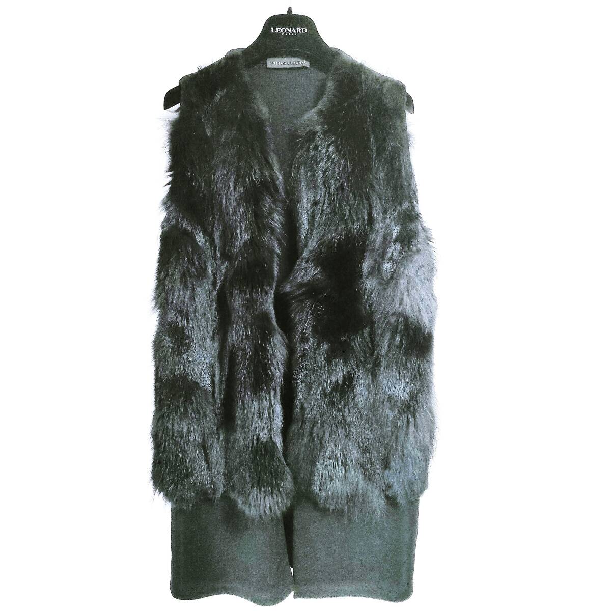 袖のあるコートだとボリュームが出やすいファーもジレにするとすっきりとしたシルエットで着こなせます。