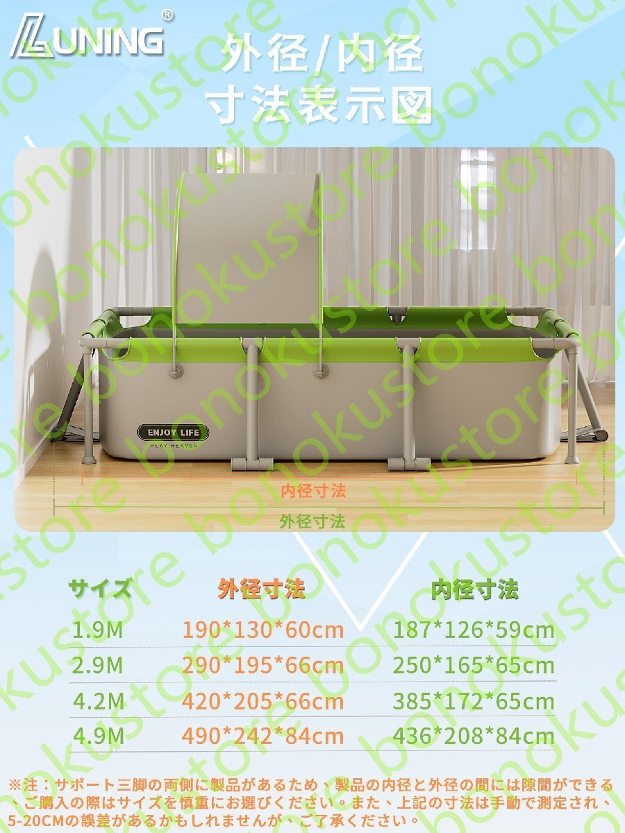 ??【製品情報&暖かいヒント】すべての部品が最適化され、強化されているため、この製品は比較的重量があります。●1.9m版は14.1KG、2.9m版は21.2KG、4.2m版は32.6KG、4.9m版は42.2KGです。友好的なリマインダー:製品が重いため、取り扱いや組み立て時には複数の人が協力することをお勧めします。家族や友人を巻き込むことは、効率を高めるだけでなく、組み立てプロセスを楽しいものにします。注意:あなたとあなたの家族の安全のために、プールの水量を深さの80%を超えないようにしてください。水を入れると重量が増加するため、製品を設置する場所は屋外で、重量を支えることができ、比較的平坦な場所を選択することをお勧めします。 【2024新登場 フレームプール】 屋根付き 大型プール 子供用 レクタングラフレームプール 家庭用 空気入れ不要 四角い プール 耐高温 耐摩擦 紫外線遮蔽 猛暑対策 水遊び 簡易露天風呂 日本語説明書付き (外径190*130*60CM、内径187*126*59CM)