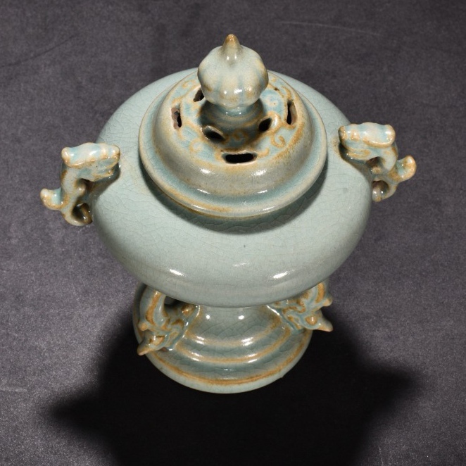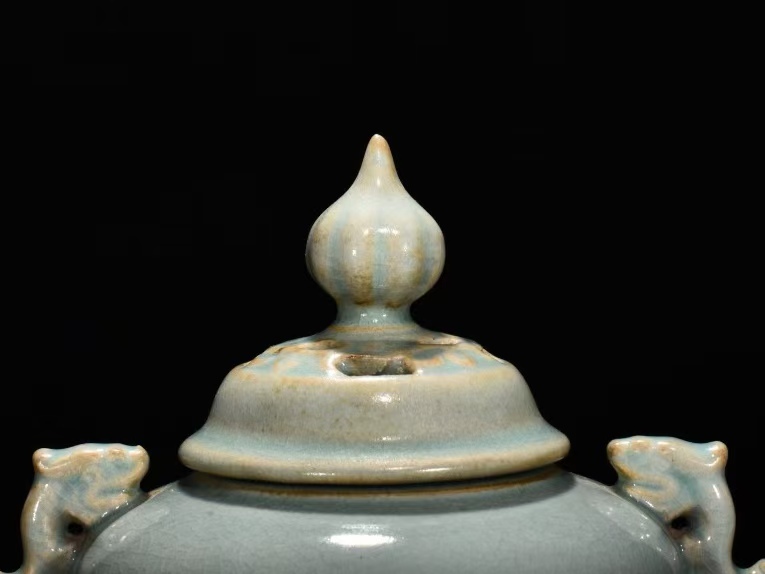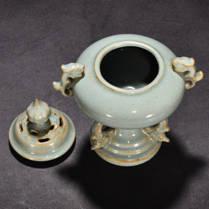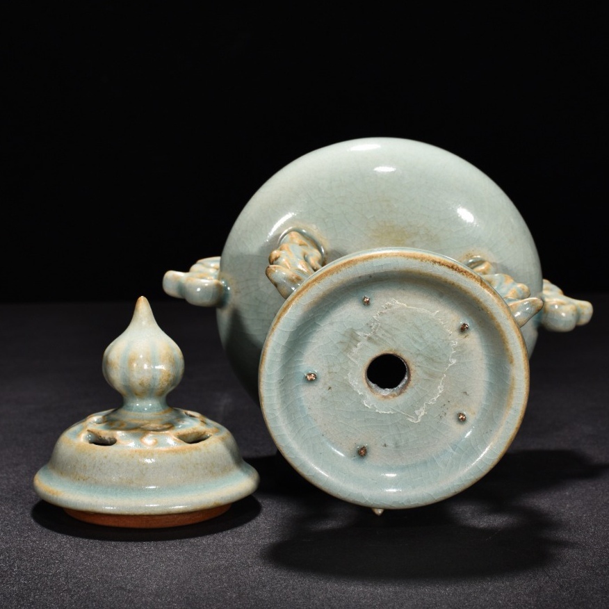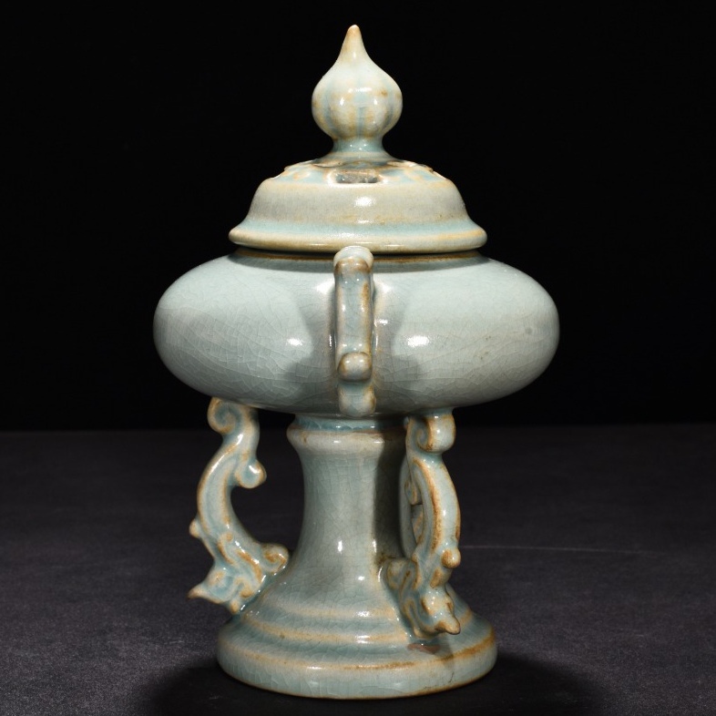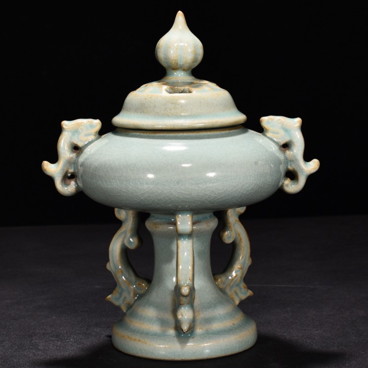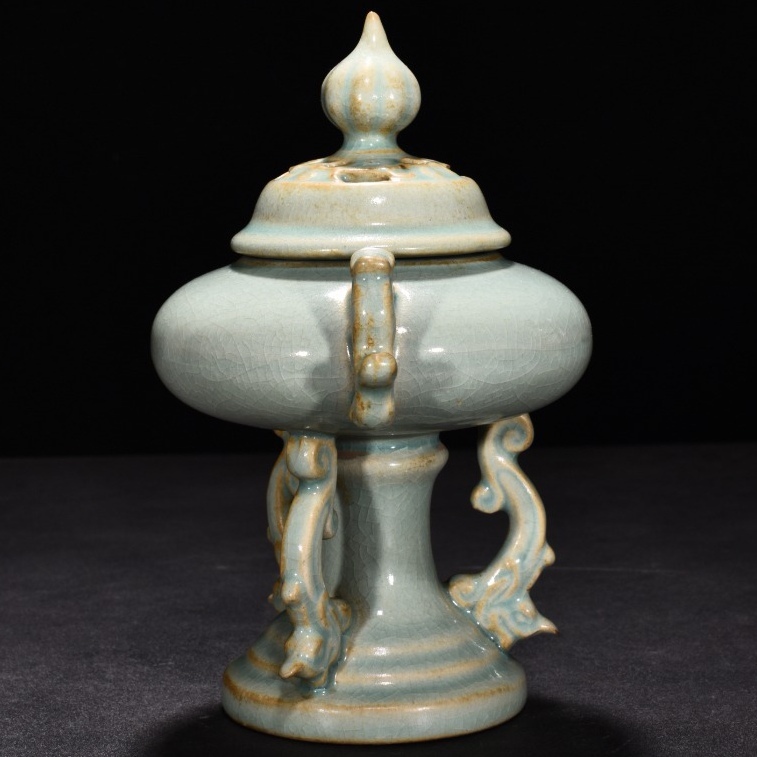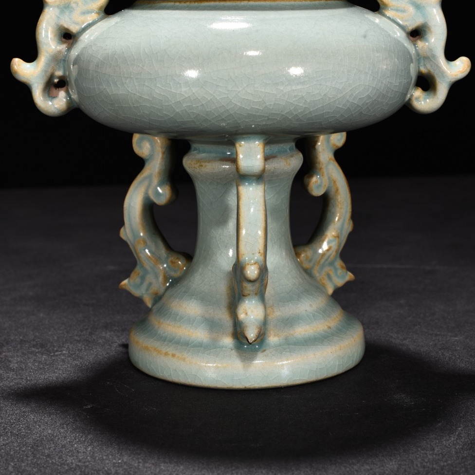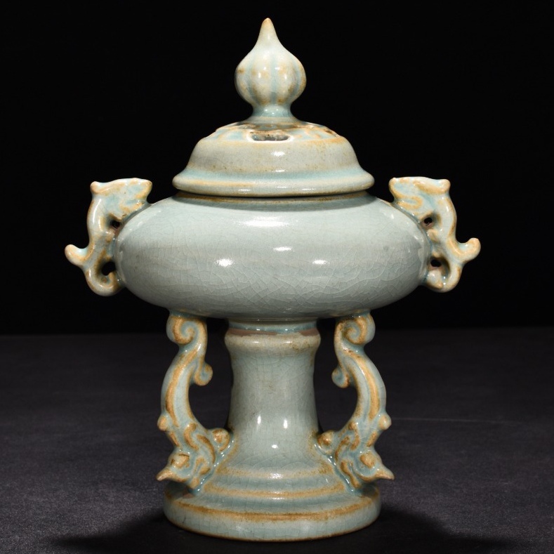 宋時代 磁器 秘蔵 汝 天青釉耳炉香炉 古陶磁器 陶芸 唐物 古賞物 時代物 骨董品 古置物 極細工 中国磁器 古美味 中国古玩923