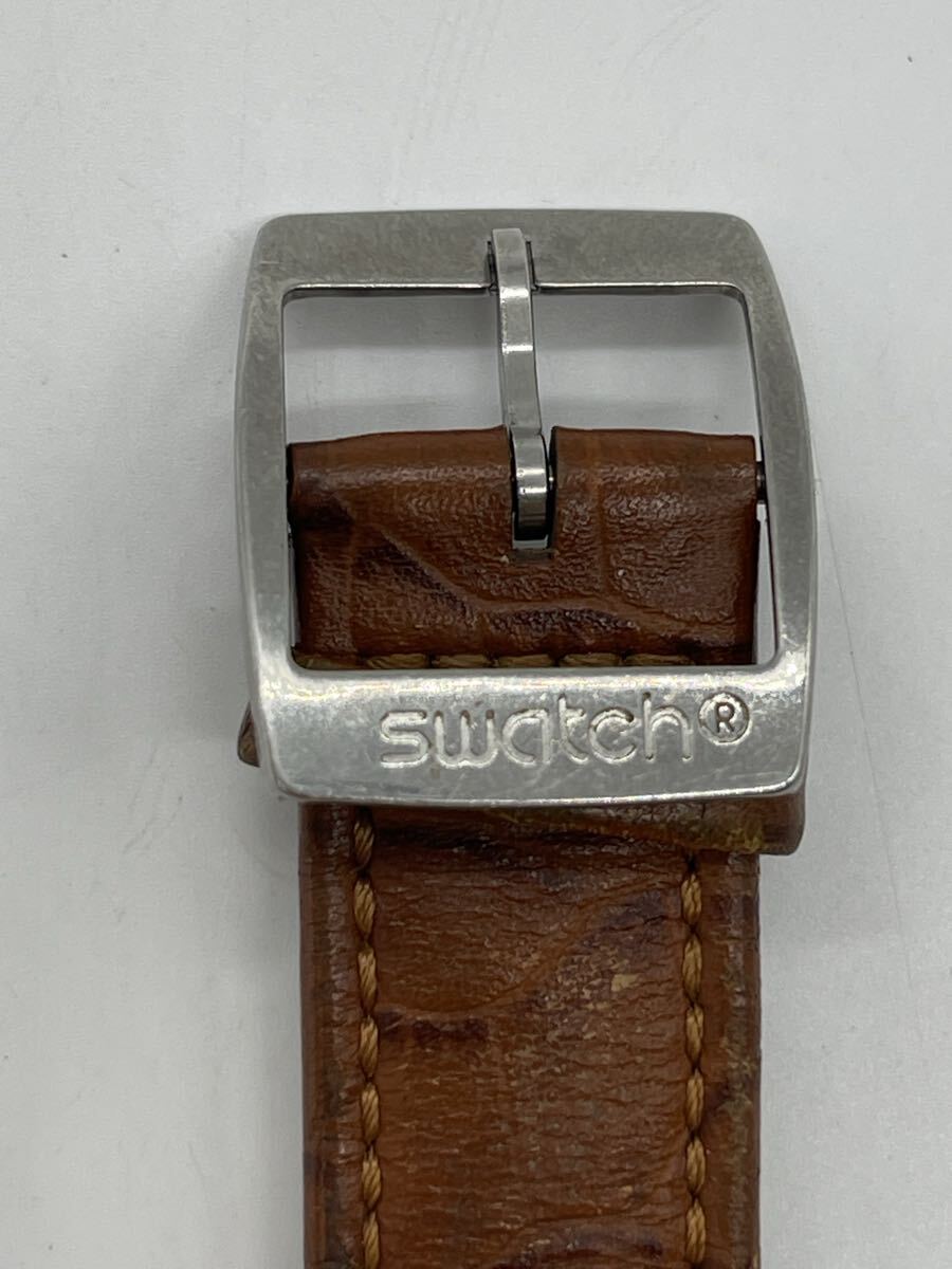 Please check the photos for condition. The watch has scratches on the case and crystal, and the leather strap shows wear. Sold as-is.