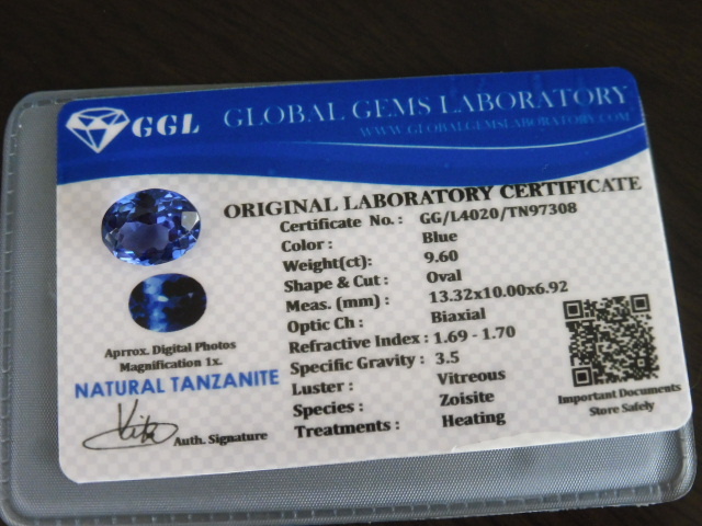 上品な色と輝き 鑑別書 タンザナイト 約9.60ct ルース リングやペンダントに!