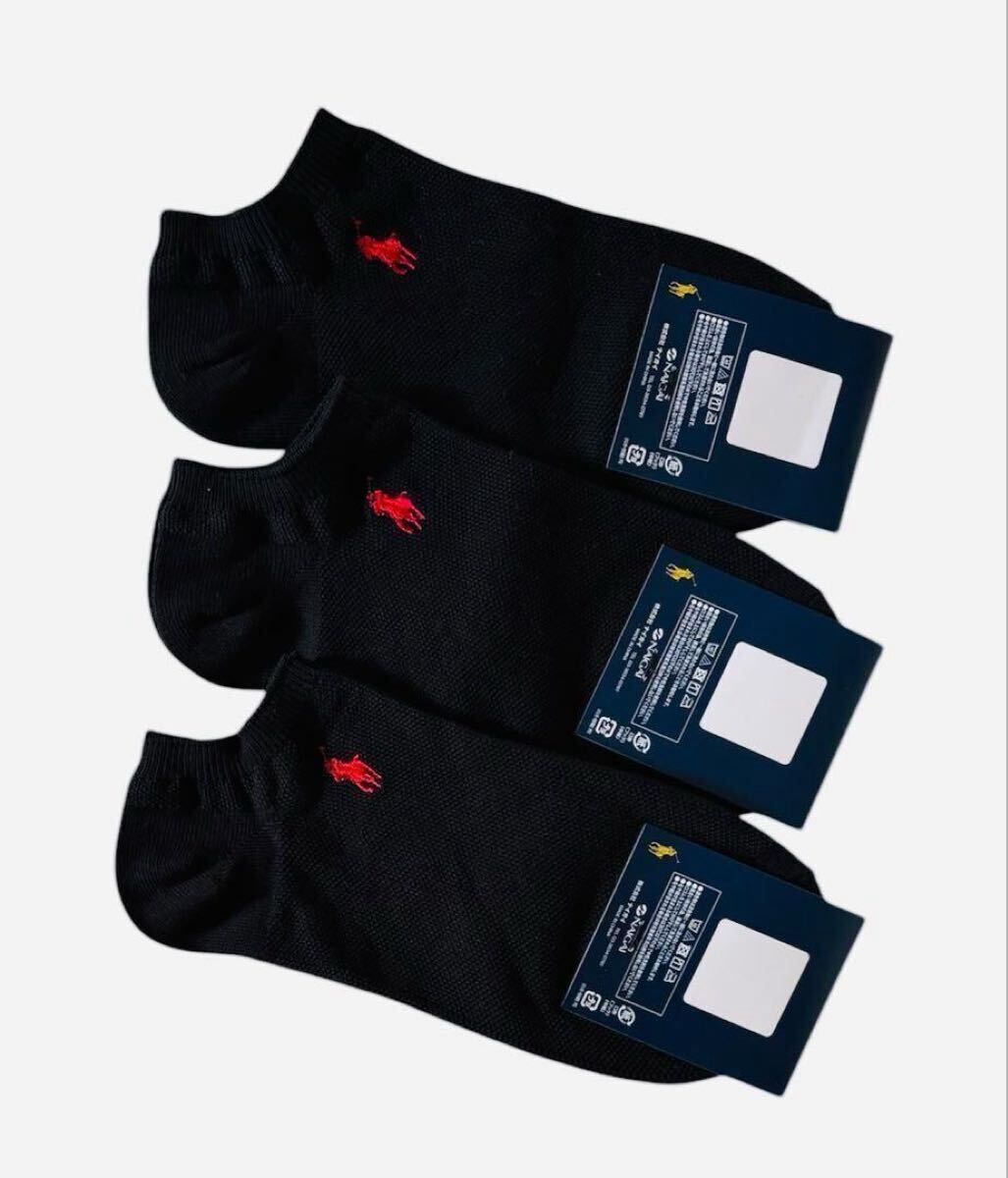 【新品未使用】ポロ ラルフローレン メンズ オーガニックコットン スニーカーソックス 靴下 3足セット 黒 ブラック 25〜27cm 送料無料