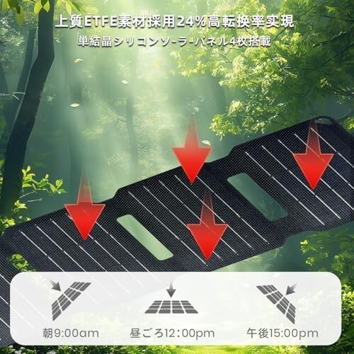 FlexSolar 10w ソーラーチャージャー5V USB-A ソーラー 充電器 小型mini ソーラーパネル 折り畳み式 防水携帯充電器地震 災害時 アウトドア停電対策 アウトドア Phone/Pad/Laptop/Android対応 商品詳細 ソーラー充電:USB-A(最大5 v/2 a)出力ポートを内蔵し、直射日光の下で太陽エネルギーを直接電気エネルギーに変換して電気を発生させ、携帯電話、タブレット、USBファン、懐中電灯、スマートウォッチ、その他の小型電子機器を充電することができる。 スマートICチップ・テクノロジーと安全機能: 内蔵ICが接続された機器を自動的に検出し、最適化された充電を提供します。内蔵LEDが充電状態を表示します。FlexSolarは、過電流、過熱、短絡保護機能により、100%安全な充電を保証します。 ソーラーパネル充電器:ETFE薄膜ラミネーションとカプセル化技術を採用し、良好な光透過性と耐候性を持っています。単結晶A +を使用しており、ソーラーパネル充電器は効率的に太陽エネルギーを電気に変換することができ、変換率は最大24%で、保護レベルはIP67で、充電器は予期しない天候の下で動作することができます。 屋外の緊急電源に最適です。 注:ジャンクションボックスは防水ではありません。 ポータブルソーラーチャージャー:展開サイズは493x161x13mm、3つ折りデザイン、折り畳みサイズは121x161x25mm、重量は200グラムであり、簡単にあなたのバックパックに入れたり、バックパックやテントに掛けることができる2ハイキングバックルが付属しています。FlexSolar10Wソーラー充電器は、あなたの旅行、ハイキング、キャンプ、バックパッキングに携帯性とシンプルさを提供します。 防塵&防水仕様:したことによりIP65の防塵 / 防水性能を実現。砂や粉塵の侵入を防ぎ、外出先の急な雨でも安心です。注意:ソーラーパネルの表面は防水ですが、出力ポートは防水ではありません。 パネルを水に浸さないでください! ご注意:ガラス越しにソーラーパネルを充電しないでください。 総電力は10Wしかないため、ガラス越しでは光の質が低下し、パネルを電気に変換する効率に影響し、充電速度が低下します。ソーラー充電器は蓄電しないため、充電時間は機器の容量によって異なります。