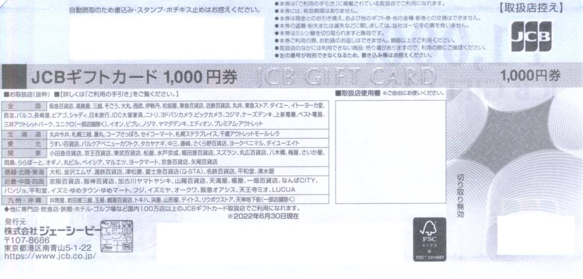 JCBギフトカード 1000円券×1枚★JCB GIFT CARD★未使用