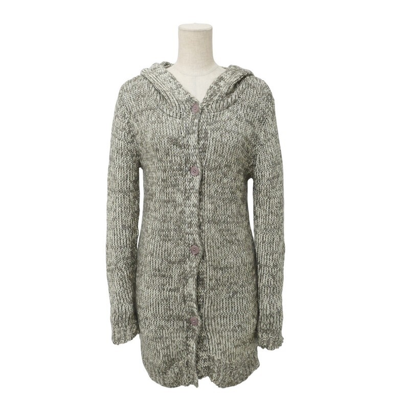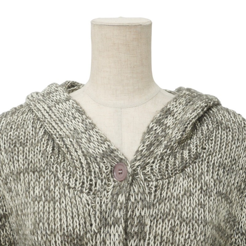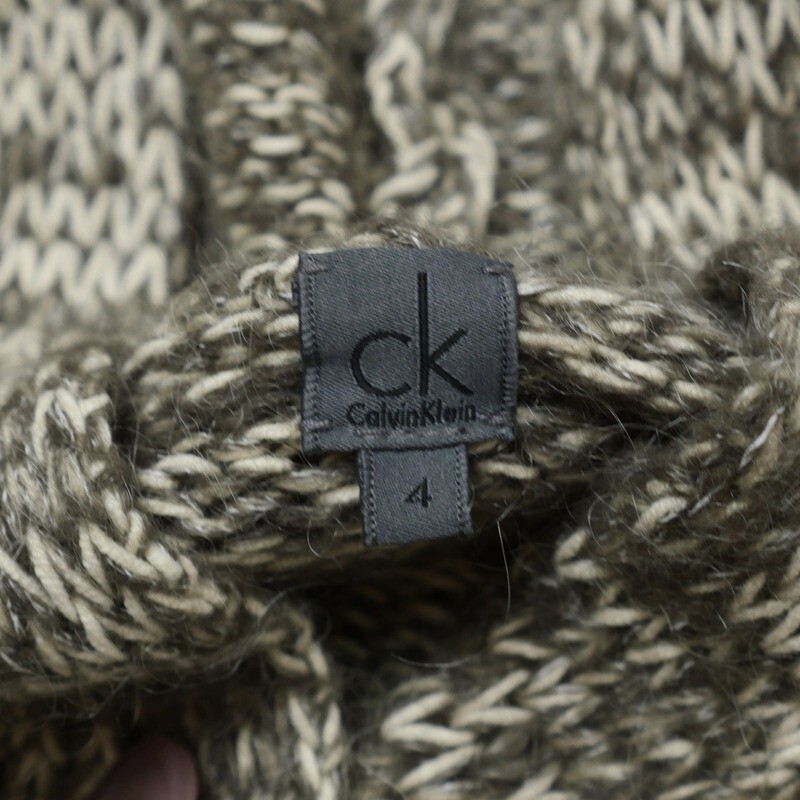 TI7947=カルバンクライン/Calvin Klein*モヘヤ混*ニットカーディガン*フーディー*ロング*サイズ4*グレージュ×アイボリー系 | |||