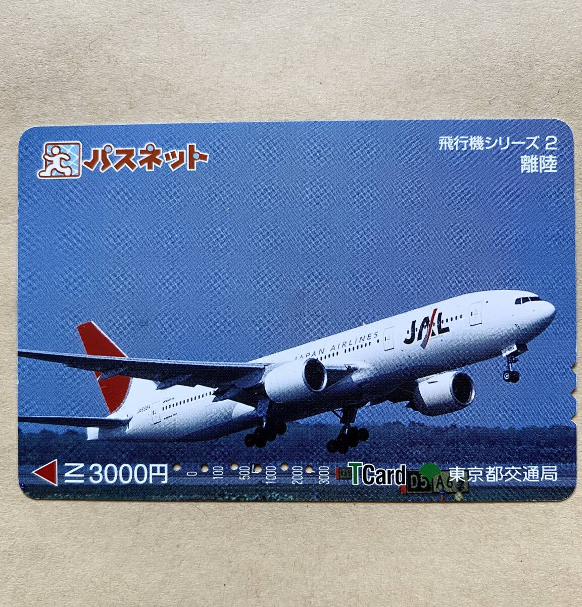 【使用済】 航空機パスネット 東京都交通局 飛行機シリーズ② 離陸 JAL 日本航空