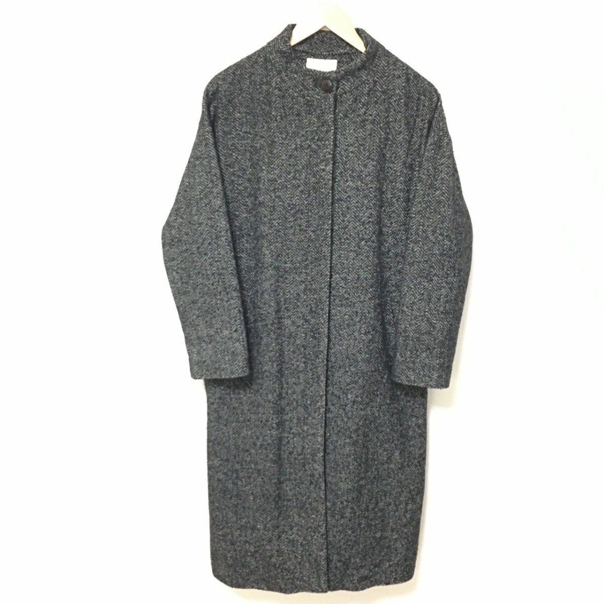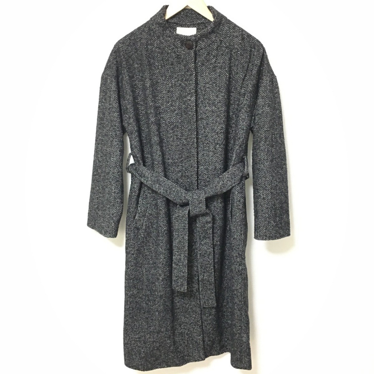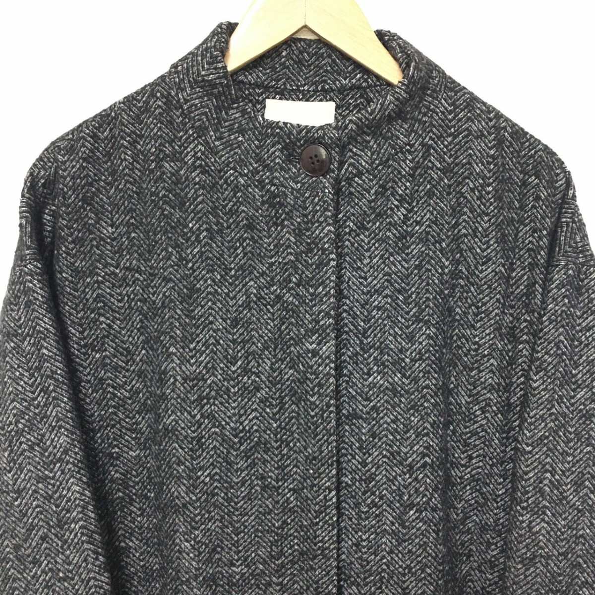 W310【MELROSE CLAIRE】メルローズクレール ロングコートスタンドカラー ヘリンボーン ウール混 グレー レディース サイズ L位 /fa