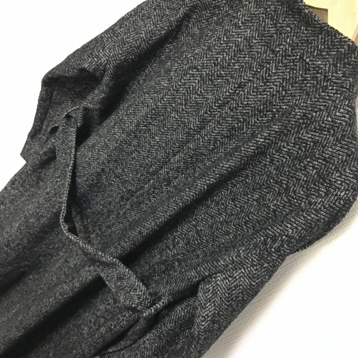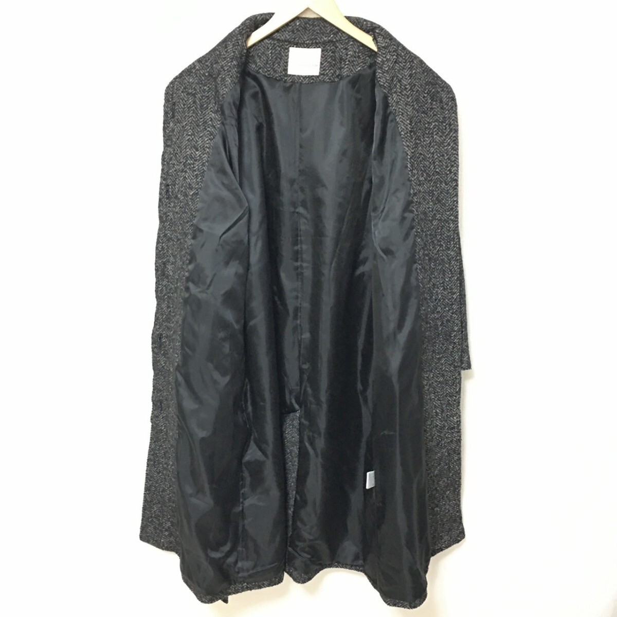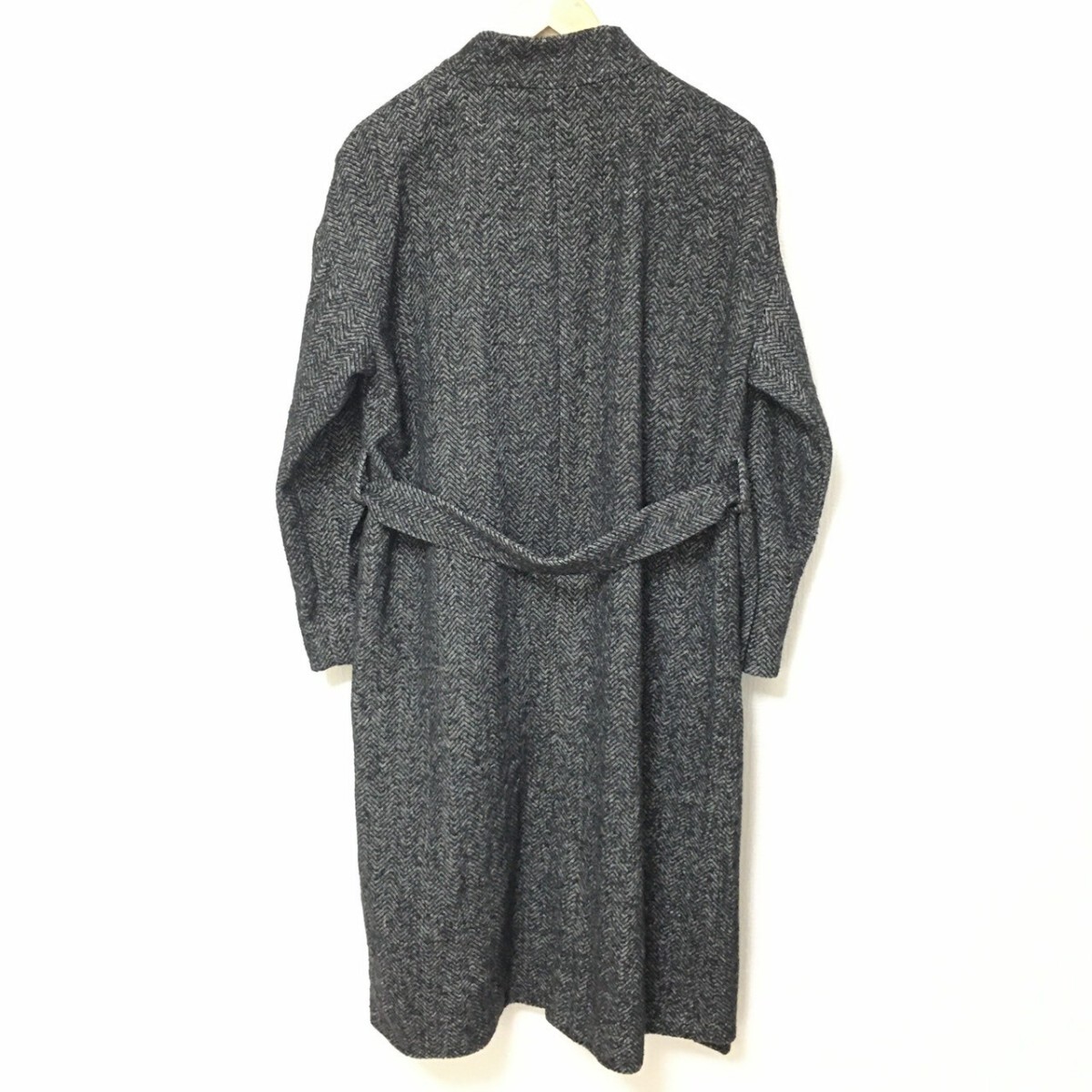W310【MELROSE CLAIRE】メルローズクレール ロングコートスタンドカラー ヘリンボーン ウール混 グレー レディース サイズ L位 /fa