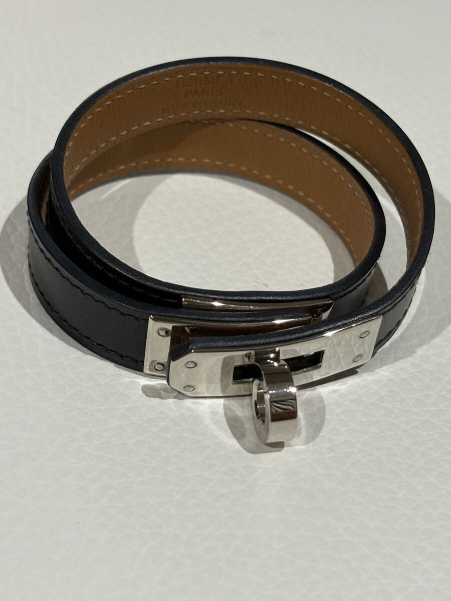 未使用 レザー ケリードゥブルトゥール ブレスレット ネイビー