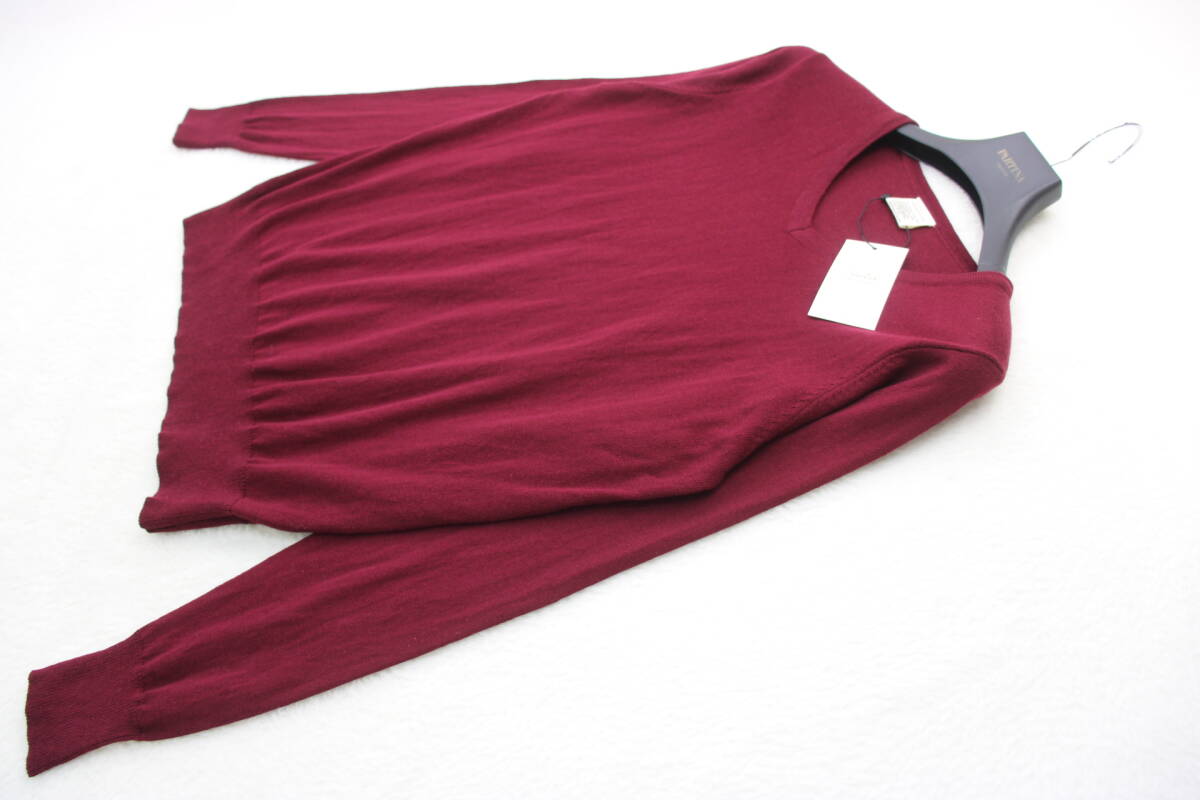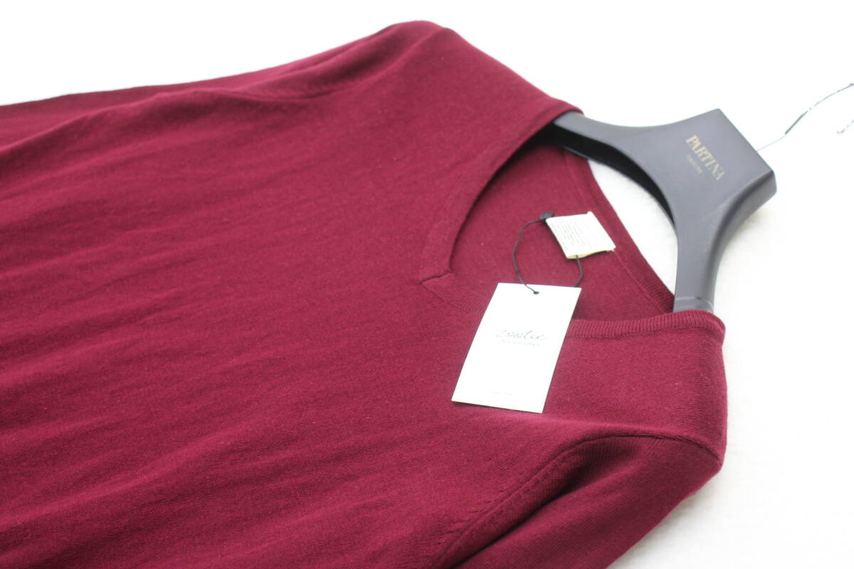 4014 新品タグ付き Vネック長袖コットンニットカットソー バーガンディー3Lサイズ