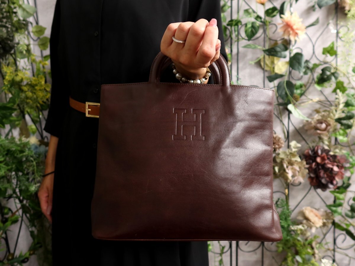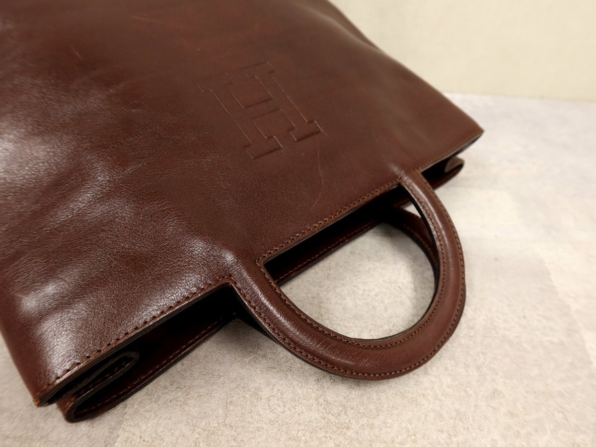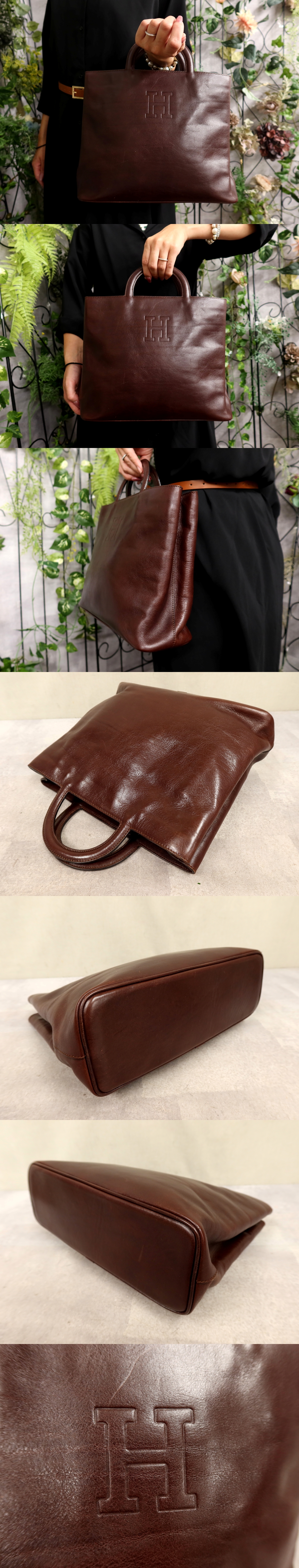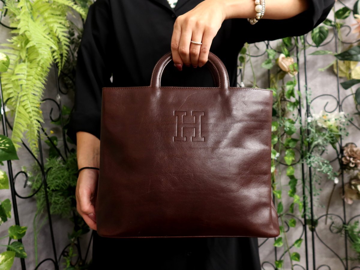 ●超美品●HIROFU ヒロフ●ロゴ型押し●カーフ レザー 本革●ハンド バッグ●ブラウン●ゴールド金具●B5 収納●書類 かばん●Js60742