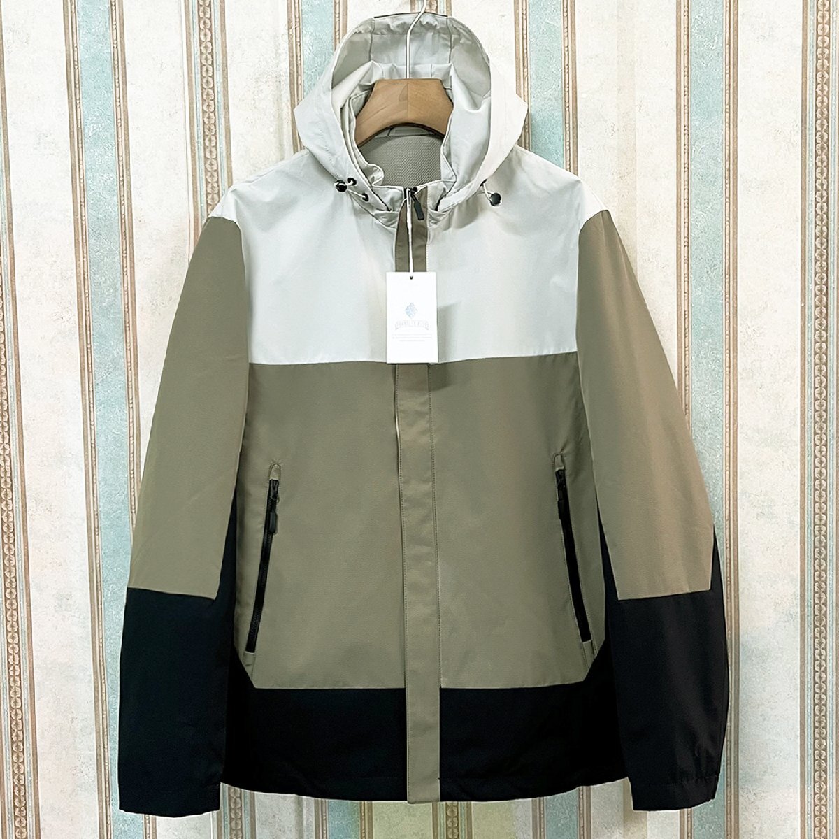 フード付きのデザインで、フード部分には調節可能なドローストリングを採用。風が強い日でもしっかり頭部をカバーし、顔まわりにフィットするから安心です。スタイリッシュなトライカラーデザインで、見た目にも優れています。前面には斜めジップポケットが2つ付いており、スマホや財布などもたっぷり収納&しっかりホールド。さらに内側にも便利な内ポケットを配置し、見た目と実用性を兼ね備えた一着。