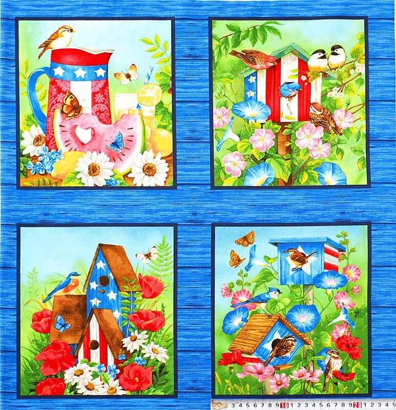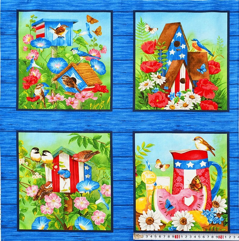 パネルの絵柄はアメリカ国旗を思わせる赤白のストライプとブルー地に白い星で塗られた巣箱と北米大陸に住む小鳥達。