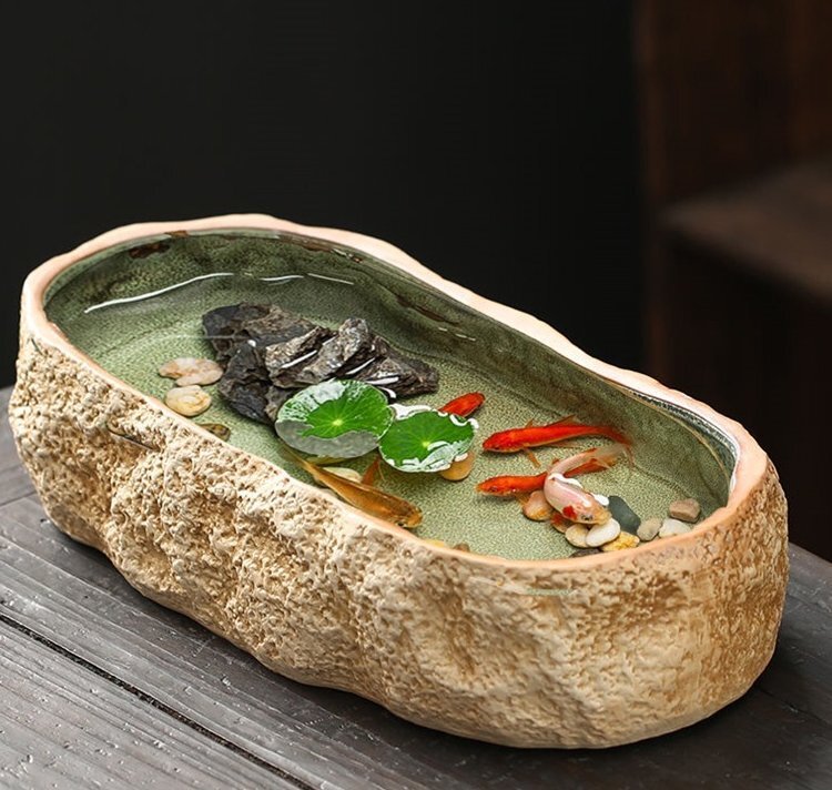古法養魚生態壺造景碗蓮盆家庭用陶磁盆卓上創意装飾