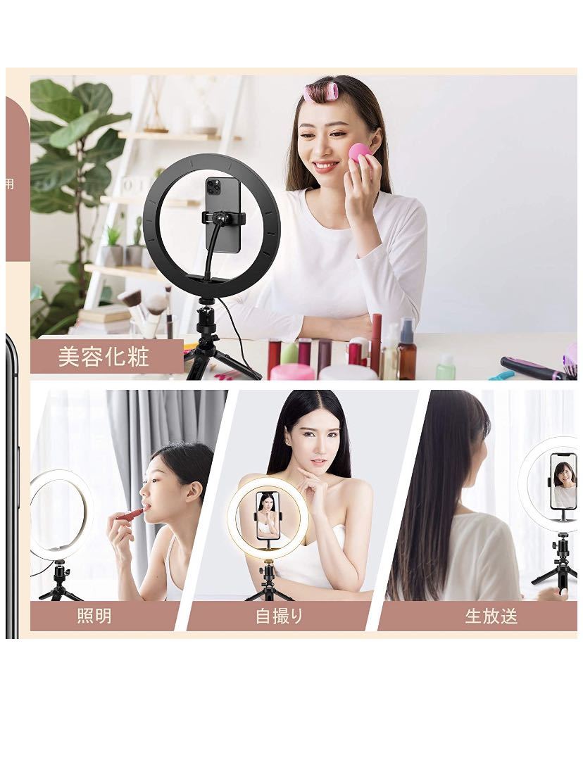 【様々な使用方法】LEDリングライトは場合や需要によって化粧ライト及び自動り棒に簡単に取り付け可能な三用スタンドです。軽量で持ち運びに便利です。旅行や屋外での作業時に使いやすいです。生放送、YouTubeコンテンツクリエイター、ビデオブロガー、自撮り、Facebook Live、Instagram Live、スナップチャット、スタジオ照明、ポートレート写真、ストリーミングなどに最適です。