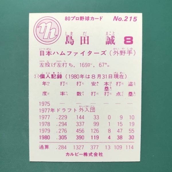 1980年 カルビー プロ野球カード 80年 215番 日本ハム 島田   LSC43