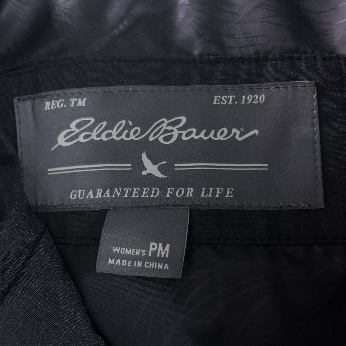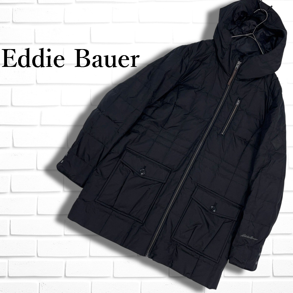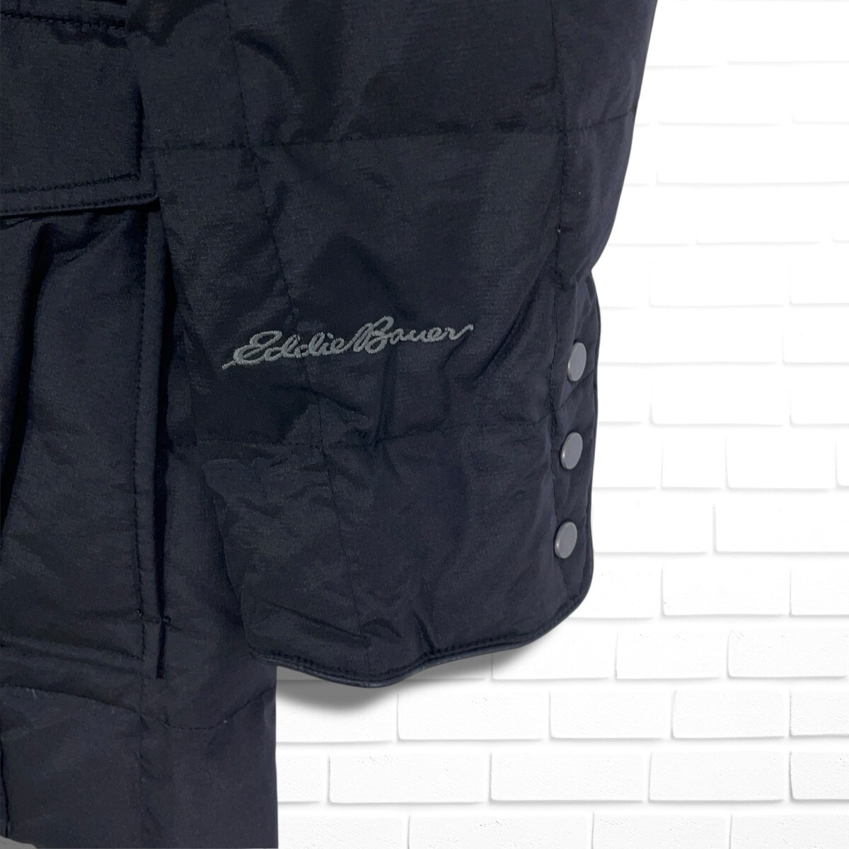 ◆良品◆ Eddie Bauer エディーバウアー ロゴ 刺繍 フーディー ダウン コート 黒 ブラック レディース PM ◆送料無料◆ 4885I◇