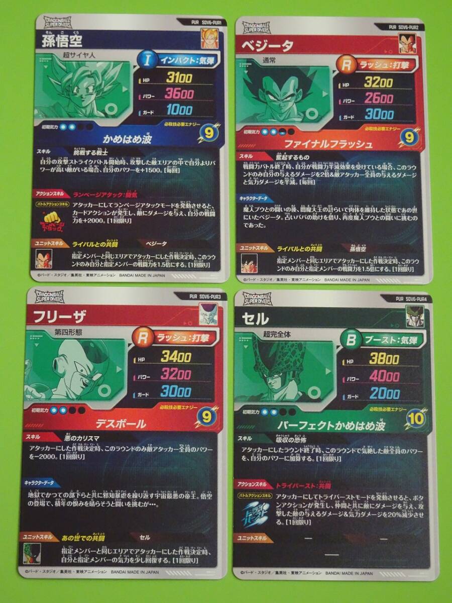 【4枚セット】 SDV6-PUR1 孫悟空 SDV6-PUR2 ベジータ SDV6-PUR3 フリーザ SDV6-PUR4 セル ドラゴンボールスーパーダイバーズ