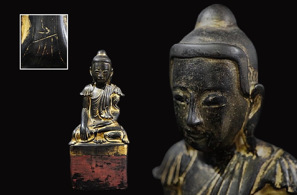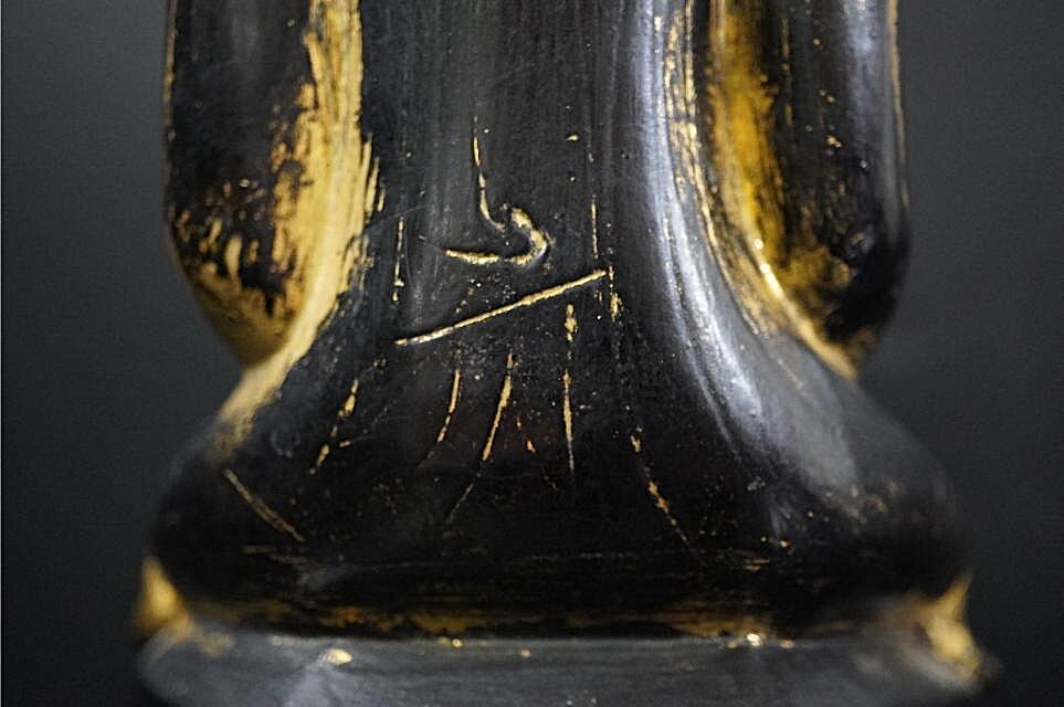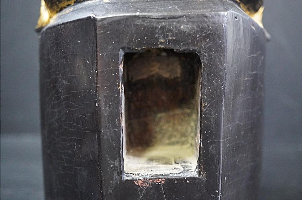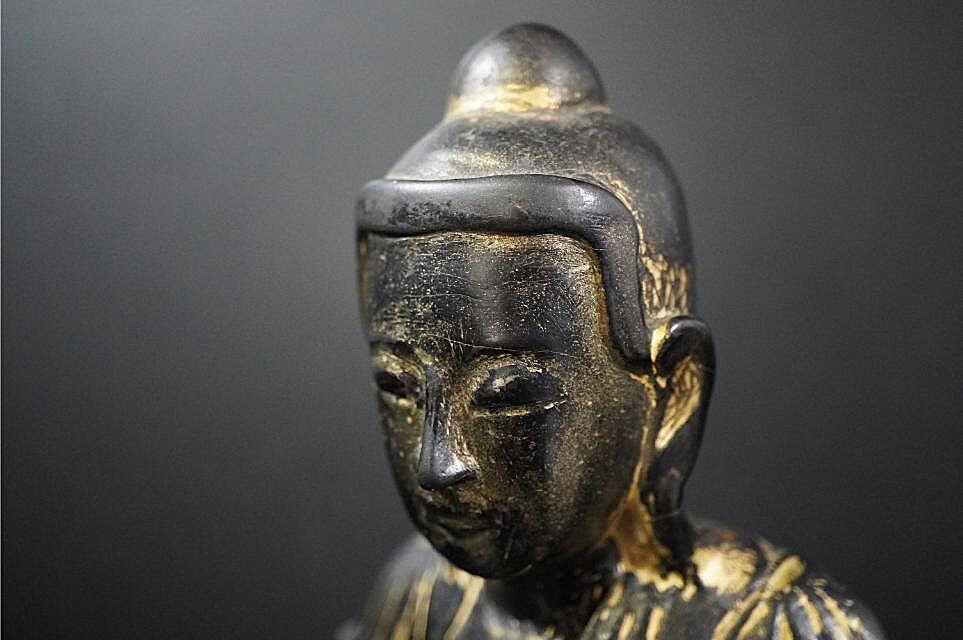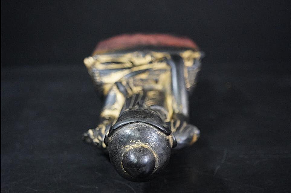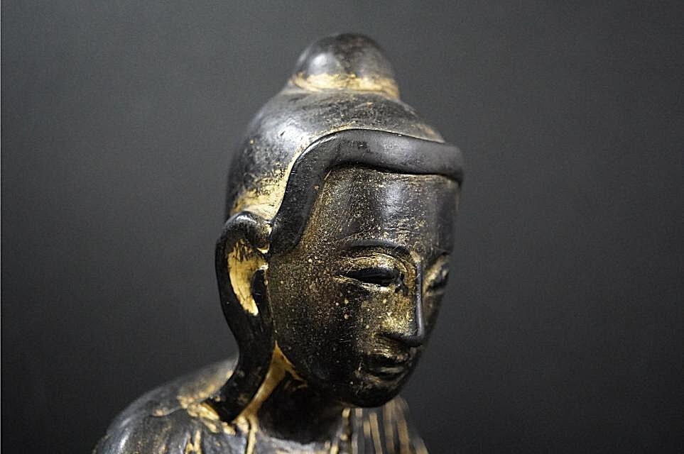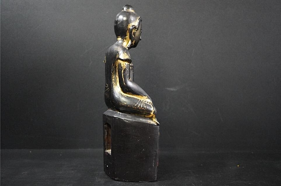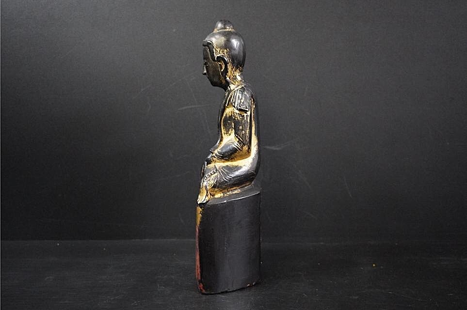 ご覧いただきありがとうございます。 時代仏 木彫 黒塗漆金 弥勒菩薩像 高さ30cm 仏像 (胎内仏欠品)です。 擦れ、シミ、汚れ等ありますが、状態は良好です。