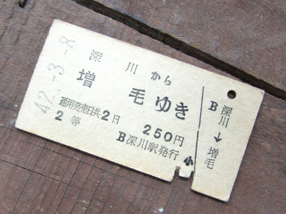 | 切符 A型硬券 2等 250円 昭和42年 深川~増毛 深川駅発行 急行 北海道 レトロ 10 |