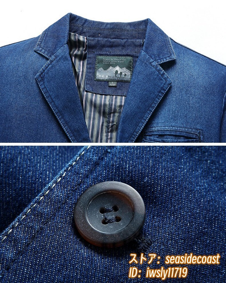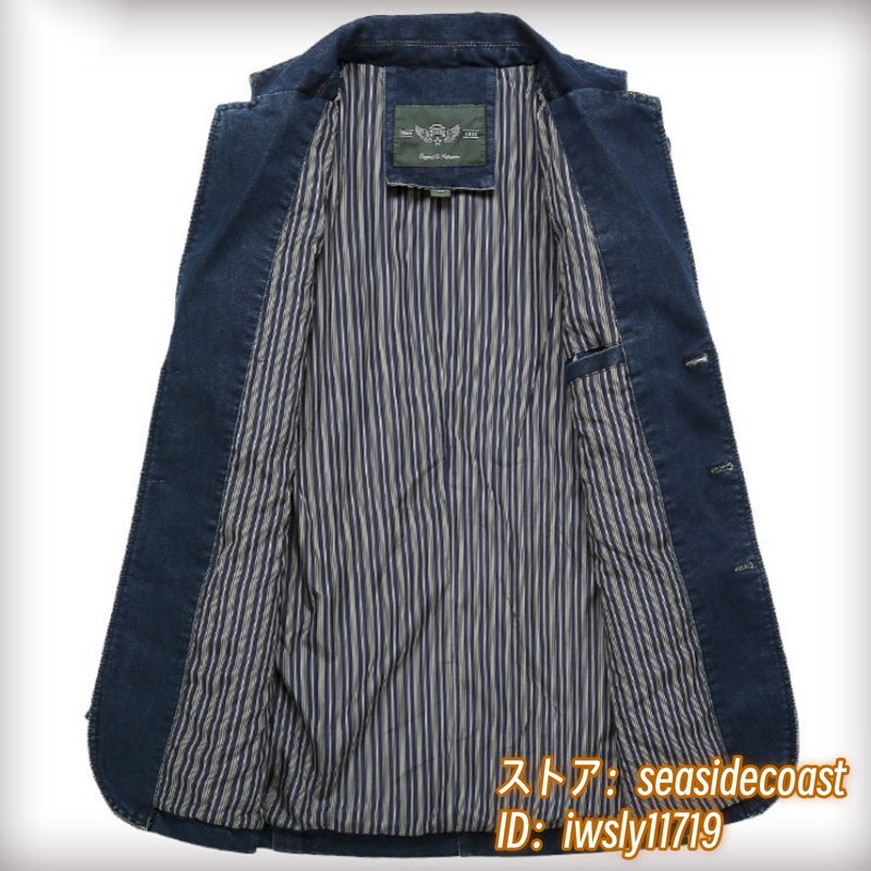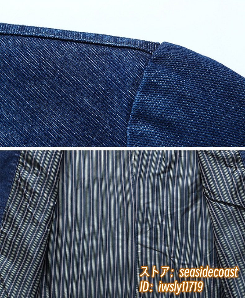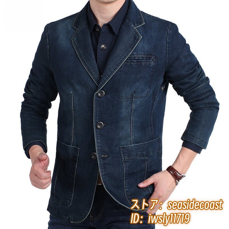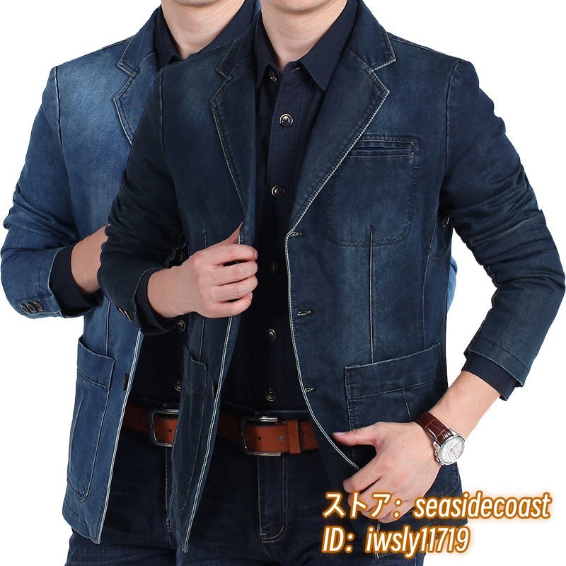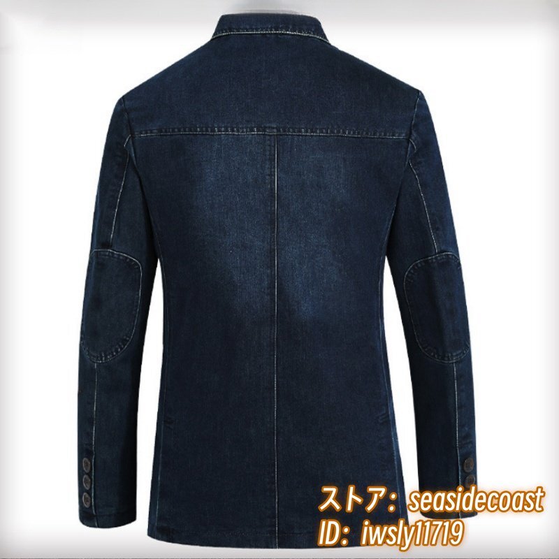 テーラードジャケット 新品 メンズ デニムジャケット ブレザー ジージャン ブルゾン ジャンパー 肘パッチワーク Gジャン 二色 紺色 M