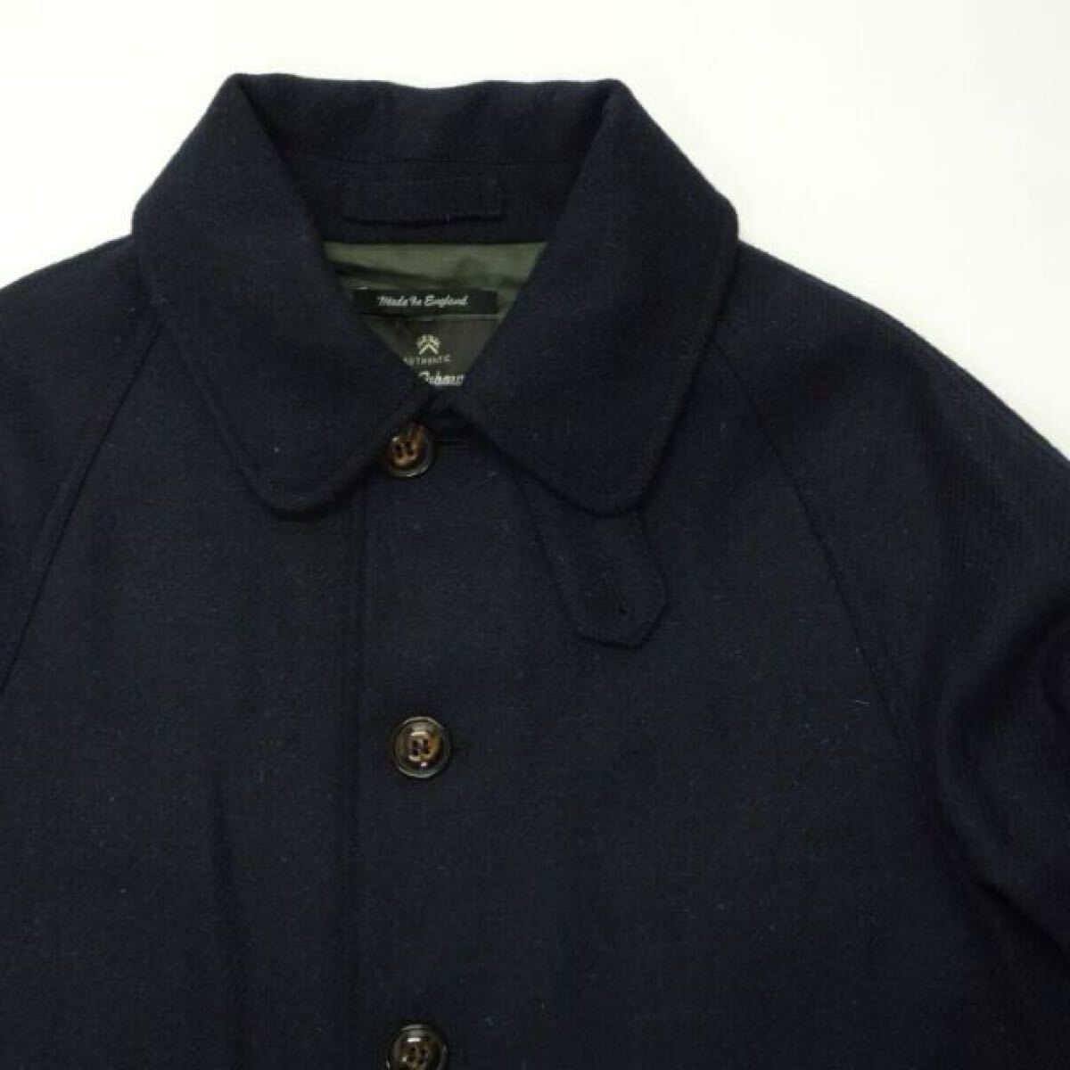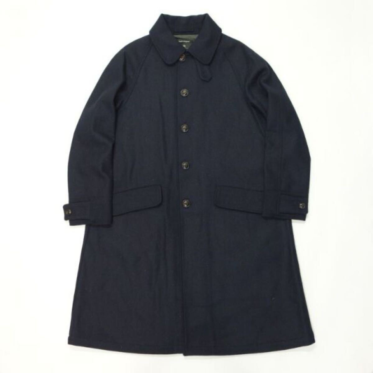 ベトナム戦争期にアメリカ軍兵が着用していたレインコートを基にアレンジされたのがこのナム・コートです。素材は英国が誇るハリスツイード。抜群の保温性を保ちつつ、背抜きの仕様により軽い着心地、また一枚仕立てだからこそ現れるAラインの柔らかなドレープ感が特徴です。ジャケットの様な細身の筒の袖と、裏地のクラシックなストライプ。丸みのある大き目の衿など素材だけではなく随所に英国らしいクラシックな雰囲気を纏ったコートです。