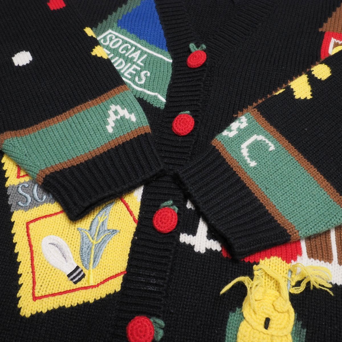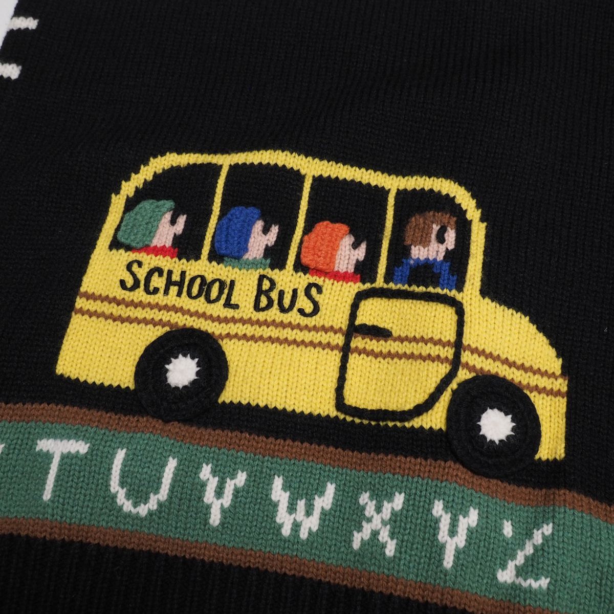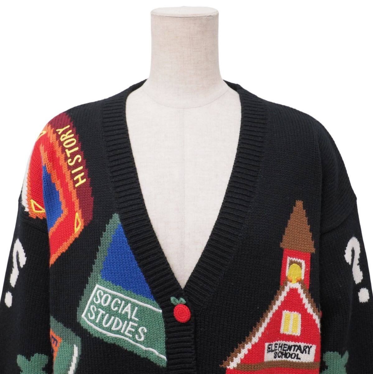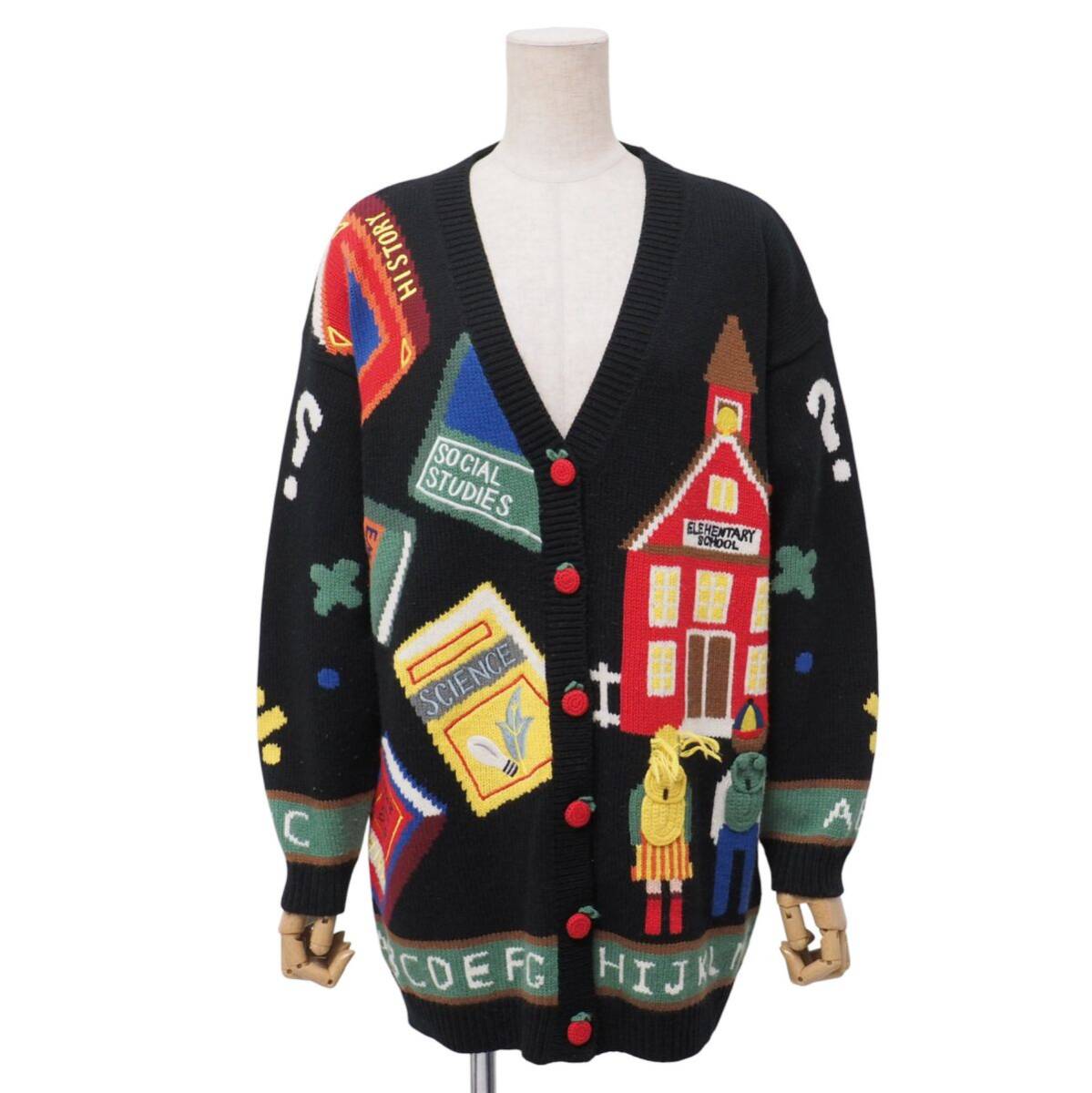 | TJ4579☆イタリア製 ウールカシミヤ ニット カーディガン オーバーサイズ Vネック 長袖 スクールバス柄 ブラック×マルチカラー Mサイズ | |||