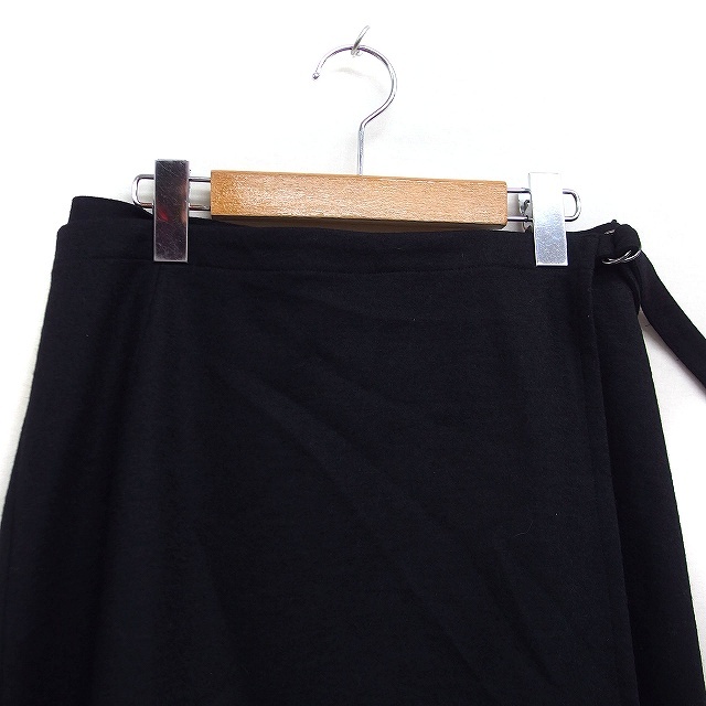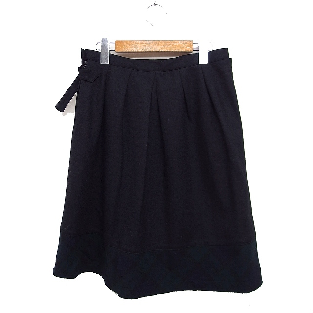 dd dedier ラップ スカート ミニ フレア チェック柄 ウール混 38 ブラック 黒 /FT20 レディース