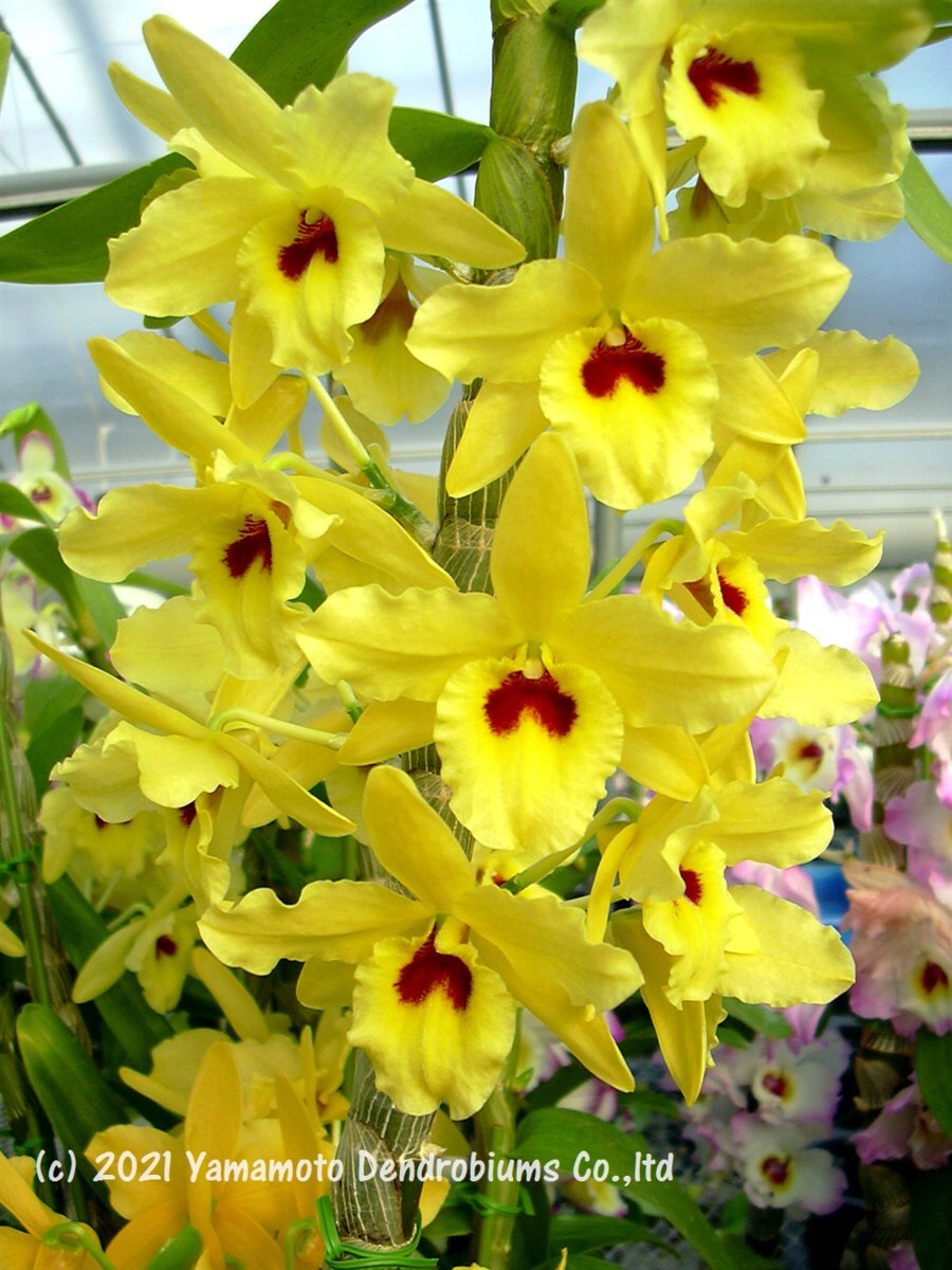| ■商品説明■ | 花弁全体が明るい黄色でのど奥に赤紫の目が入る花付きの良い黄色系品種。1990年代に黄色系鉢花として活躍しました。