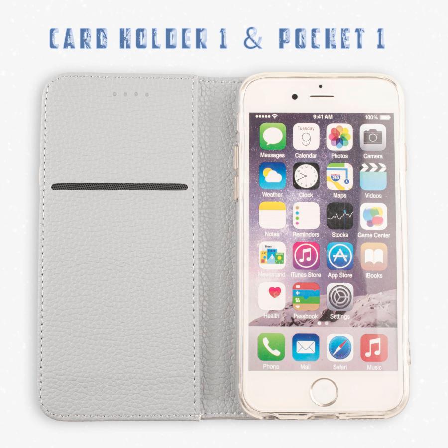 お財布代わりにも便利な、ポケット付き手帳型ケース