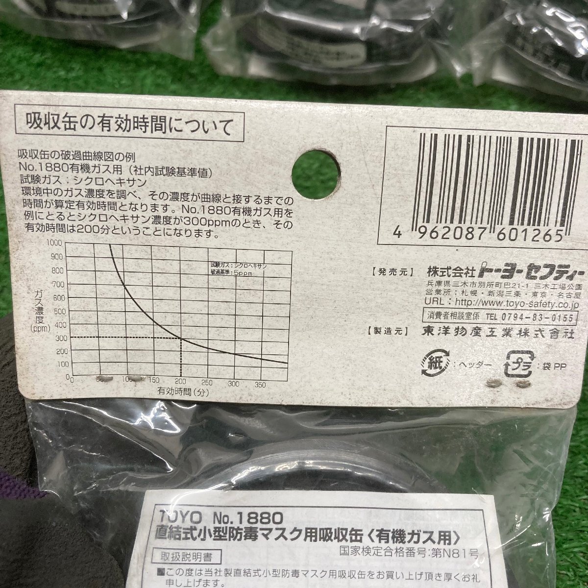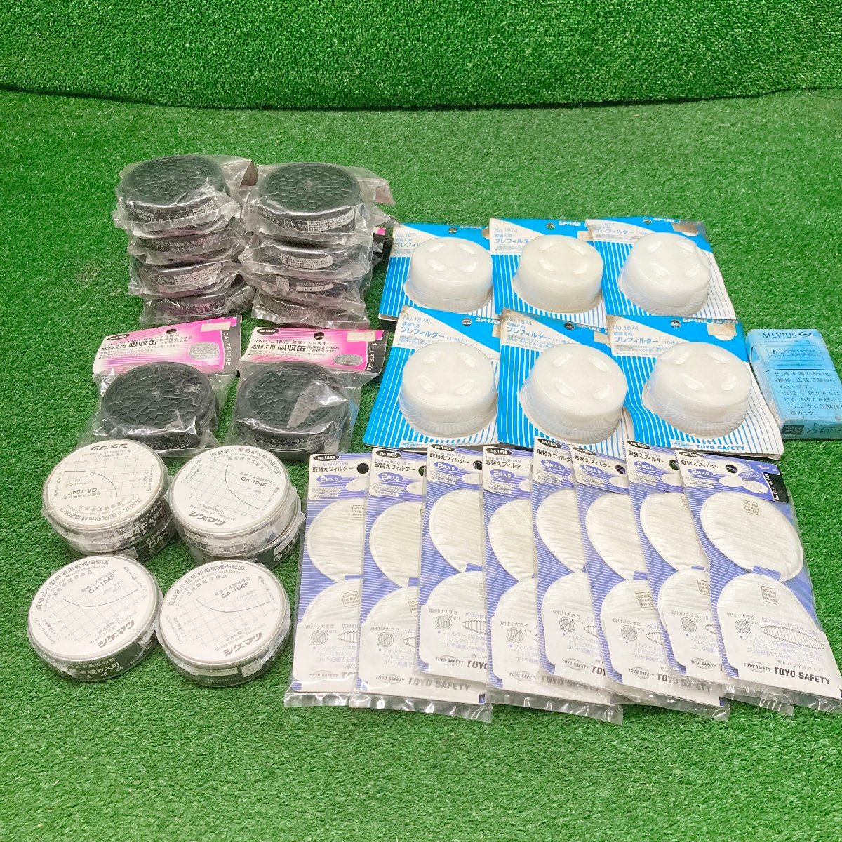 商品 | トーヨーセフティー、他 取替用プレフィルター(10枚入)×6個 取替用吸収缶 No.1880×10個 直結式小型防毒マスク用吸収缶 CA-104F 有機ガス用×6個 取替えフィルター2枚入 №1835×8袋 ★30個セット ☆新品☆ |