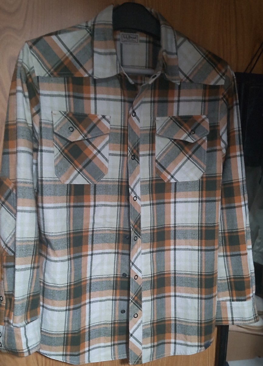 LLBeanパフォーマンスフランネルシャツ サイズUSAL ポリエステル/ウール混紡で速乾性 保温性に優れた素材 身幅65cm着丈78cm袖丈 66cm 肘部パッチ