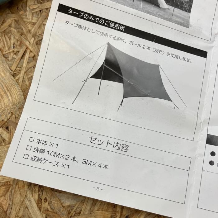 ※テントなど設営確認済みの記載がないものは生地の汚れや焚き火による穴あきなど見落としがある場合がございます。