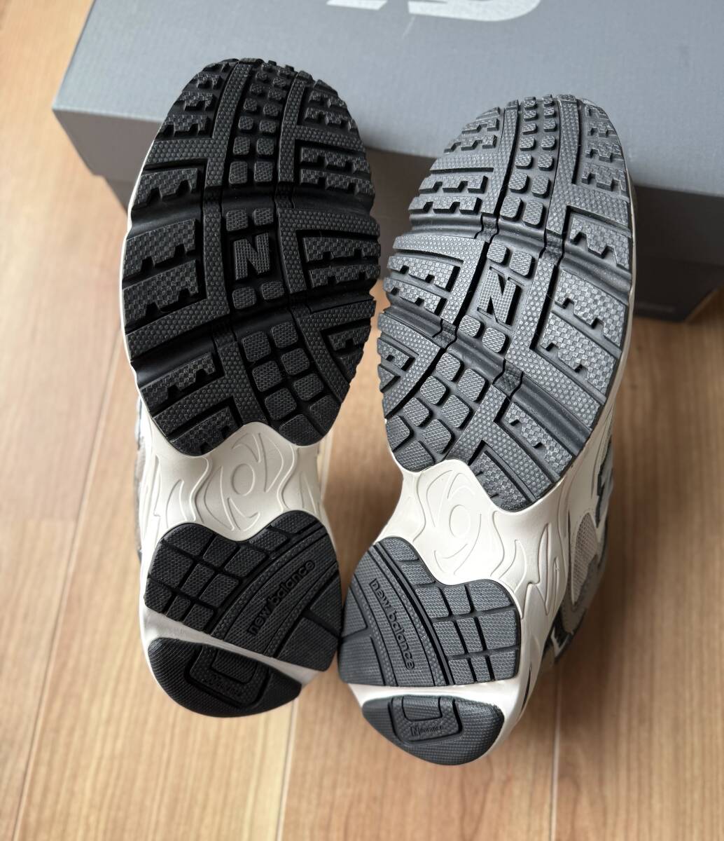 ■未使用品(保管の際のシワ、スレ、アタリ、小傷、小さな汚れ、匂い付着など気にされる方はご遠慮願います。)画像7にあるように右足踵部に若干の薄汚れがございました。箱には凹み、傷、破れ、ヤケ、シールやタグの剥がし跡、小穴などのダメージがある場合がございます。ソールには試着などの際に発生する薄汚れが発生している場合がございますのでご了承くださいませ。梱包はサイズによってコンパクトにたたんだり、余裕をもっての梱包など様々です。サイズにシビアな方はご遠慮くださいませ。
