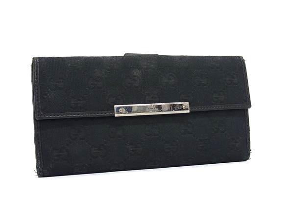 GUCCI グッチ 112715 3661 GG柄 GGキャンバス✕レザー Wホック 長財布 二つ折り ウォレット 小銭入れ 札入れ ブラック系 DK4985