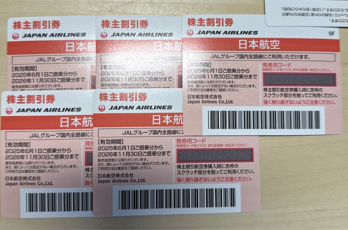 JAL 日本航空株主優待券、コード送信にて対応します。2026年11月30日搭乗分まで使用可能です。