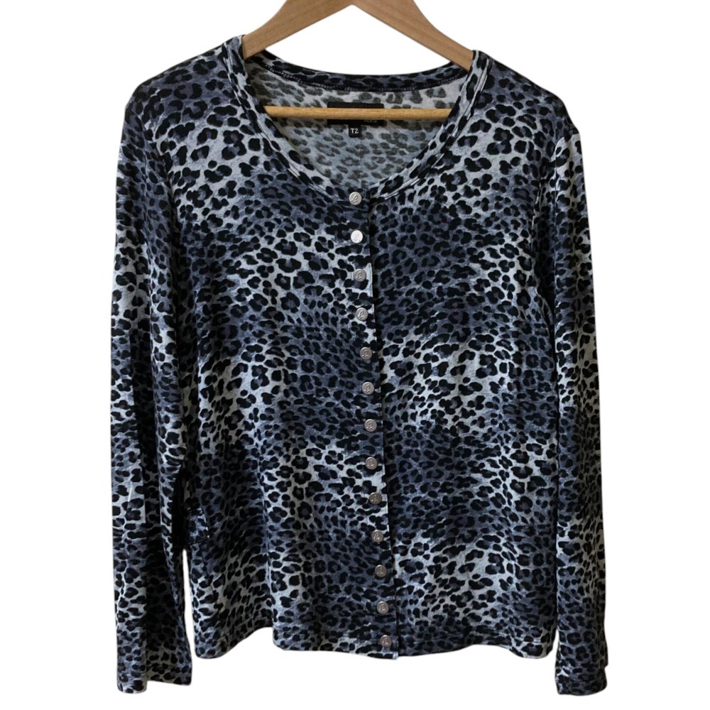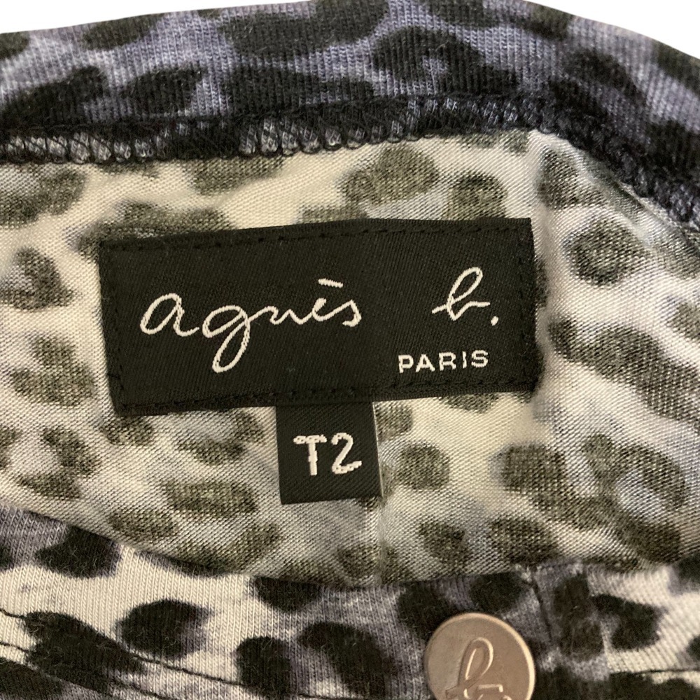 美品 agnes b. アニエスベー レオパード柄 クルーネック カーディガンプレッション T2 ブラック ホワイト