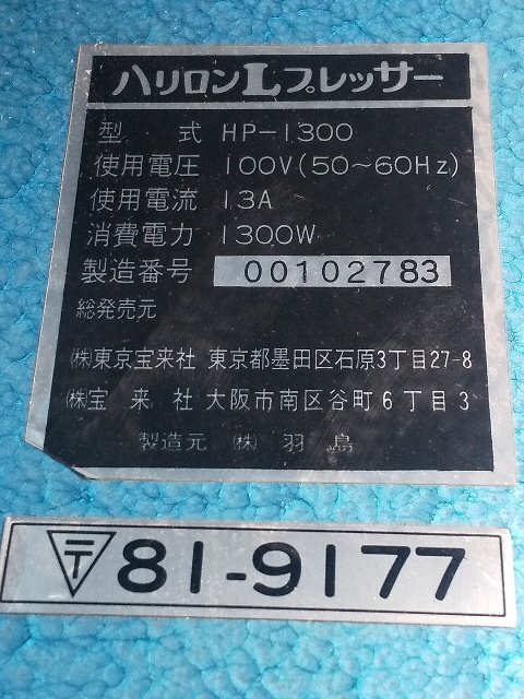 | タイトル | 宝来社 ハリロン Lプレッサー HP-1300 熱転写ヒートプレス機 アイロンプリント 動作良好 B0010 | ||||||||||||||||||||||