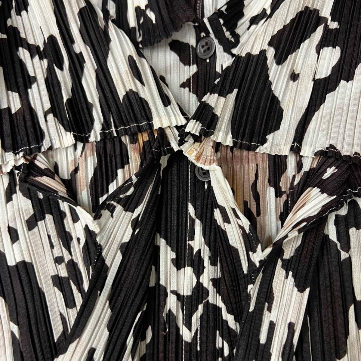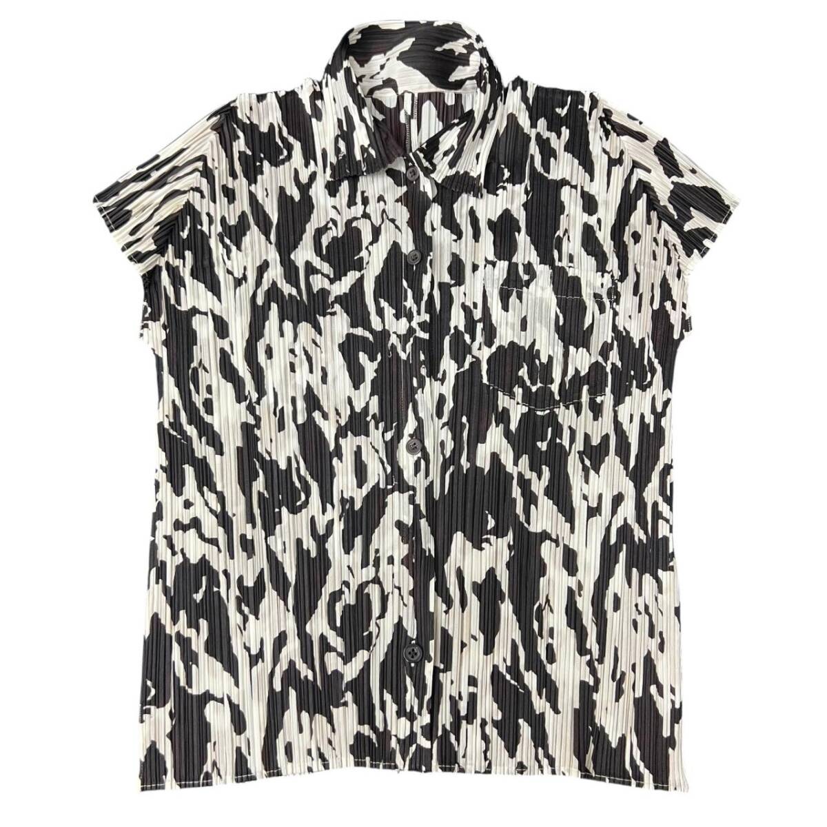 | ISSEY MIYAKE イッセイミヤケ プリーツプリーズ 半袖 PP41-JJ783 ブラック ホワイト系 サイズ3 半袖シャツ レディース |