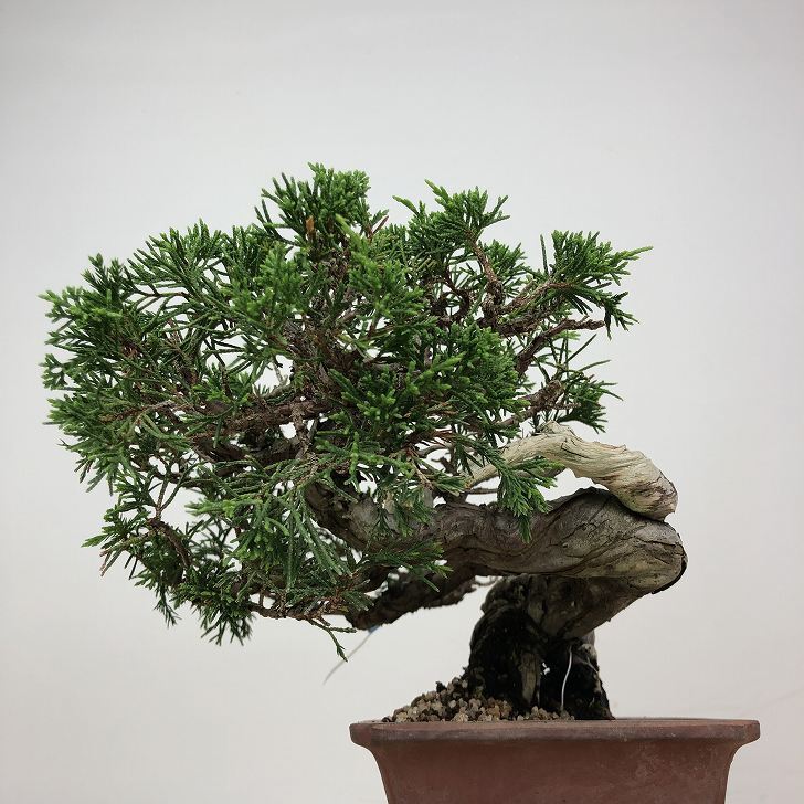 ■植物ですので撮影時期や季節によって剪定などの手入れにより写真から変化がございます。撮影日をご確認のうえ、ご注文ください。 ■年に一度、冬頃にジン・シャリのお手入れをおこなっています。薬品の関係で黄色く変色しているようにみえる場合がありますが徐々に薄れていくので問題はありません。 【真柏盆栽】 シンパクの1番の特徴と言えば、短く締った紐状の葉と、わずかな水吸いでも生き抜くことができる強靱な幹枝です。自然界では積雪や強風などで押しつぶされ木部が露出し、朽ちて白骨化したものが見られます。枝の一部が白骨化したものを神(ジン)、幹の場合は舎利(シャリ)といいます。 |