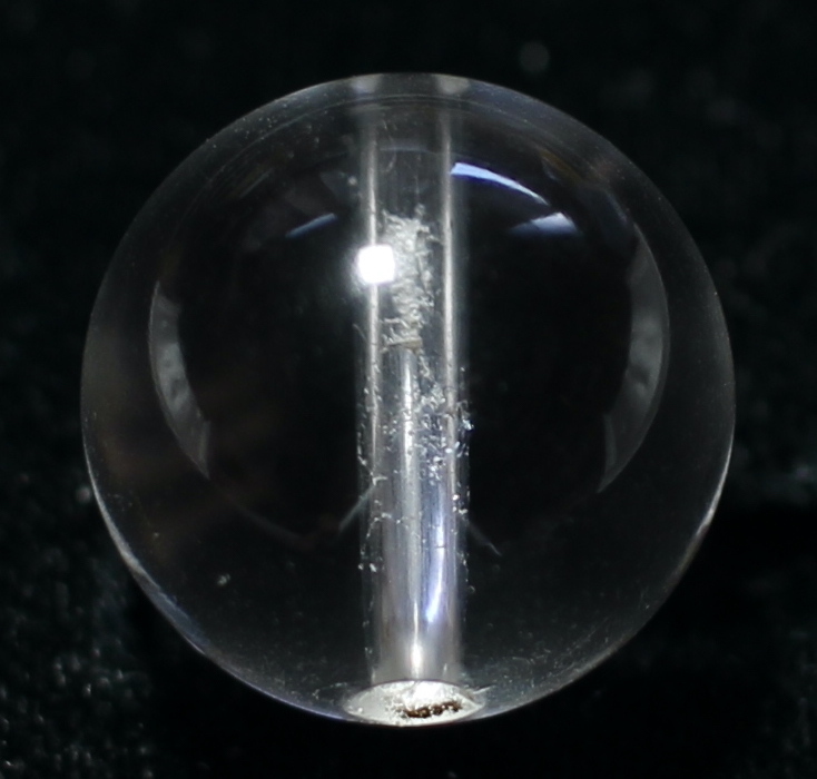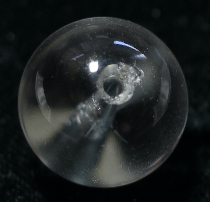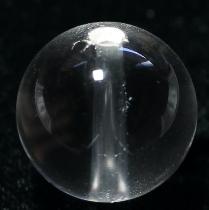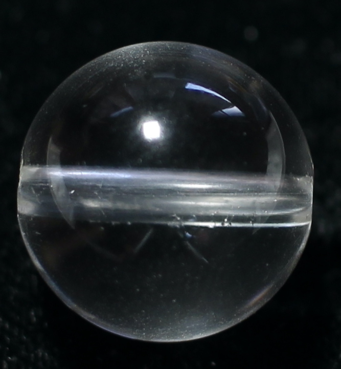 水晶の玉です。0.8mm程度の貫通穴が空いています。