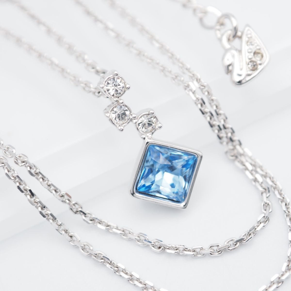 F558 スワロフスキー SWAROVSKI ペンダント ネックレス ブルーカラー ダイヤモンド風 デザイン シルバー