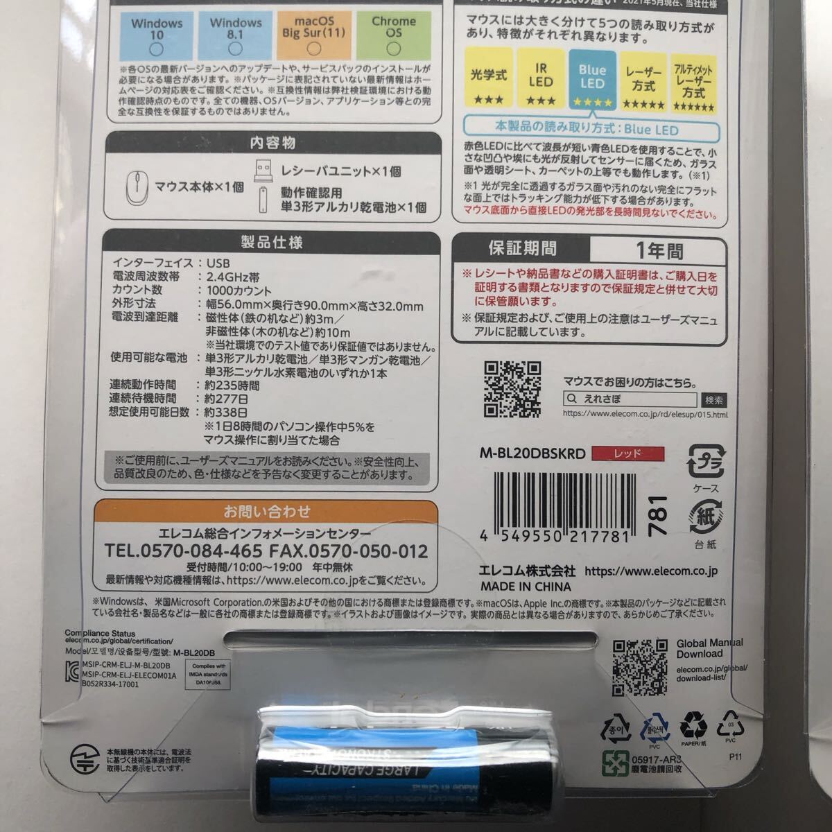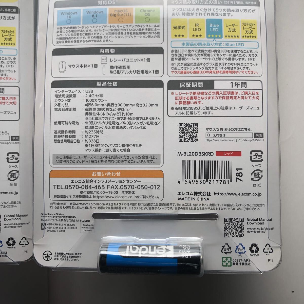 [2個セット] 抗菌 ワイヤレス 静音 BlueLED マウス M-BL20DBSK シリーズ M-BL20DBSKRD ワイヤレスマウス